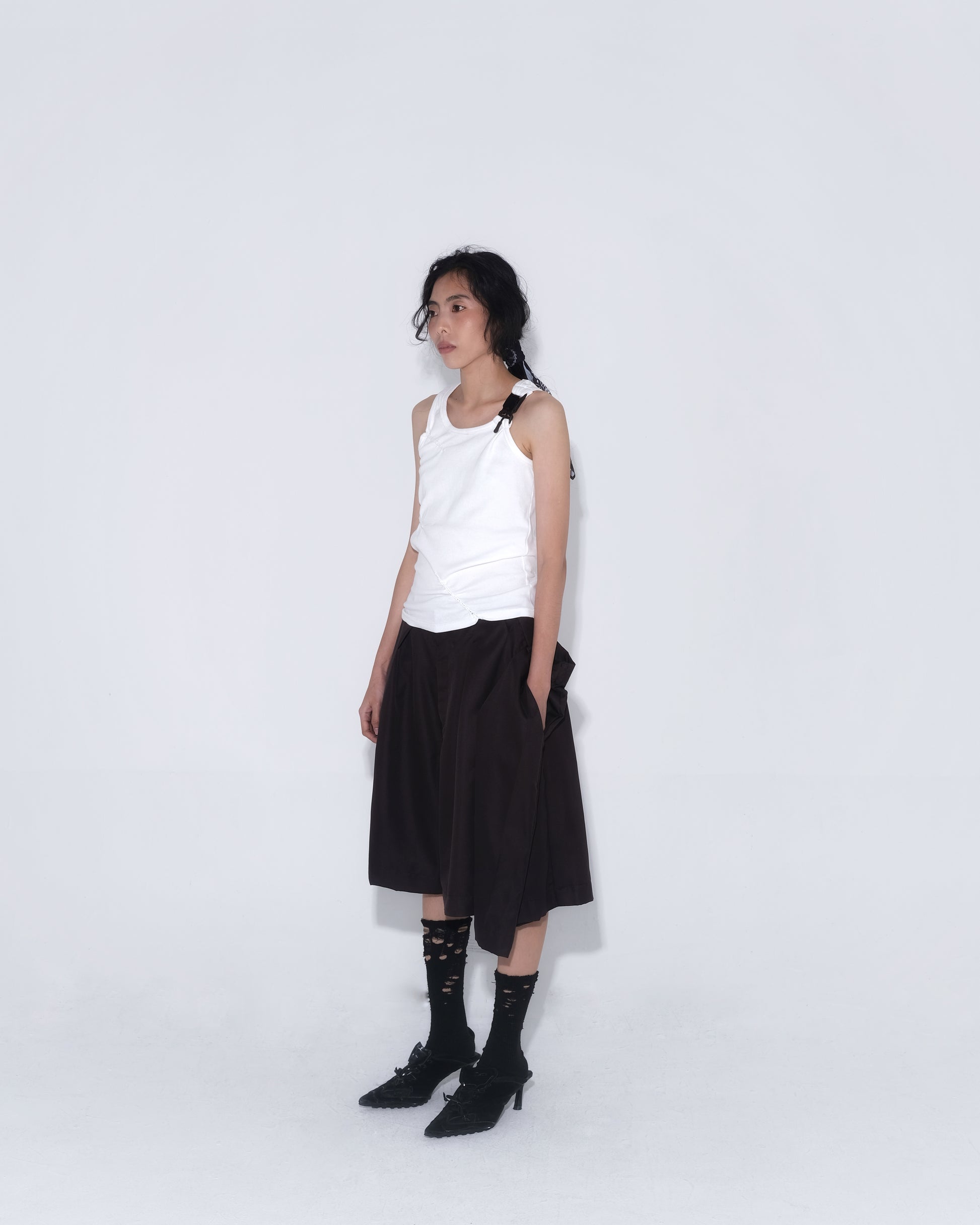 The 3 Kaki Kongfu Pants Shorts feature a unique design with three cutting parts, three front pockets, three back welt pockets, and a box pleat flap pocket on the right side. These shorts are perfect for casual or semi-casual wear, offering versatile styling options for any occasion.