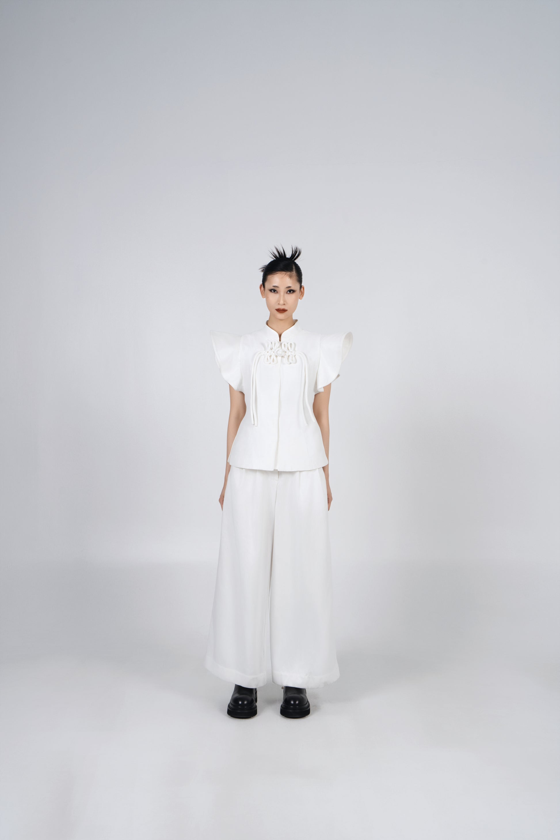 Upgrade your wardrobe with our A-JANE CNY Ruyi Tailored Pants, featuring a modern Oriental co-ord look with elegant Chinese knot, mandarin collar and flare flowy short sleeves. Dress to impress with the perfect balance of sophistication and style.
