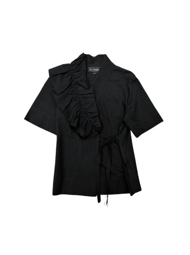 A-JANE RURU RUFFLE OVERSIZED TOP - BLACK