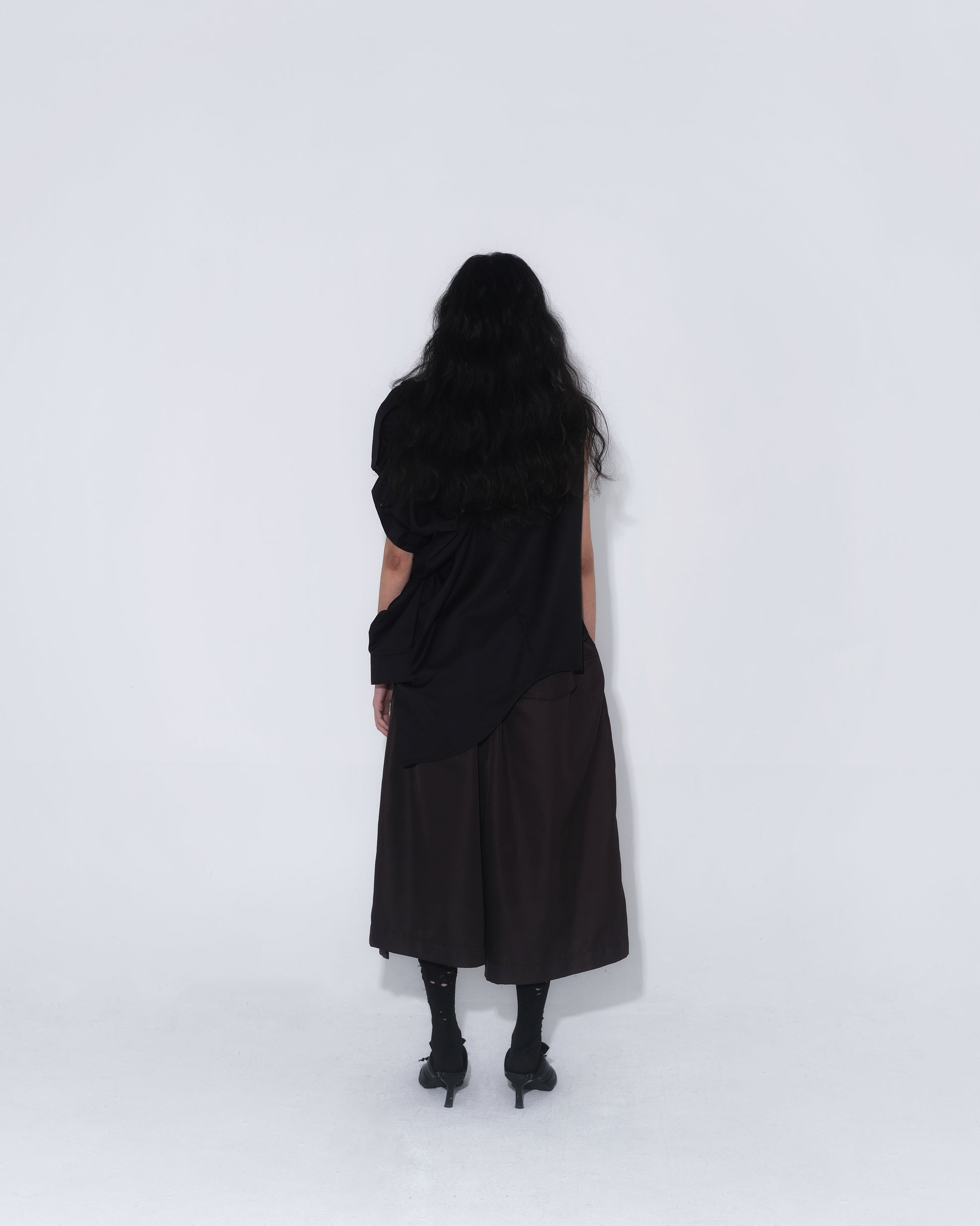 Asymmetrical Fly Pocket Pants in Dark Brown and