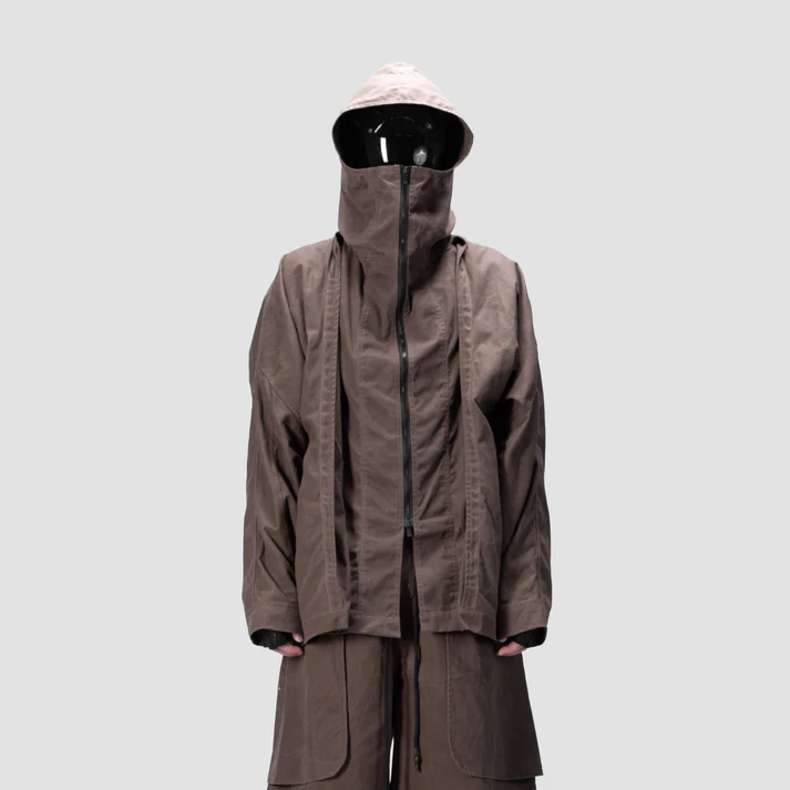 BACK PLEATED HOODED SHIRT - BROWN