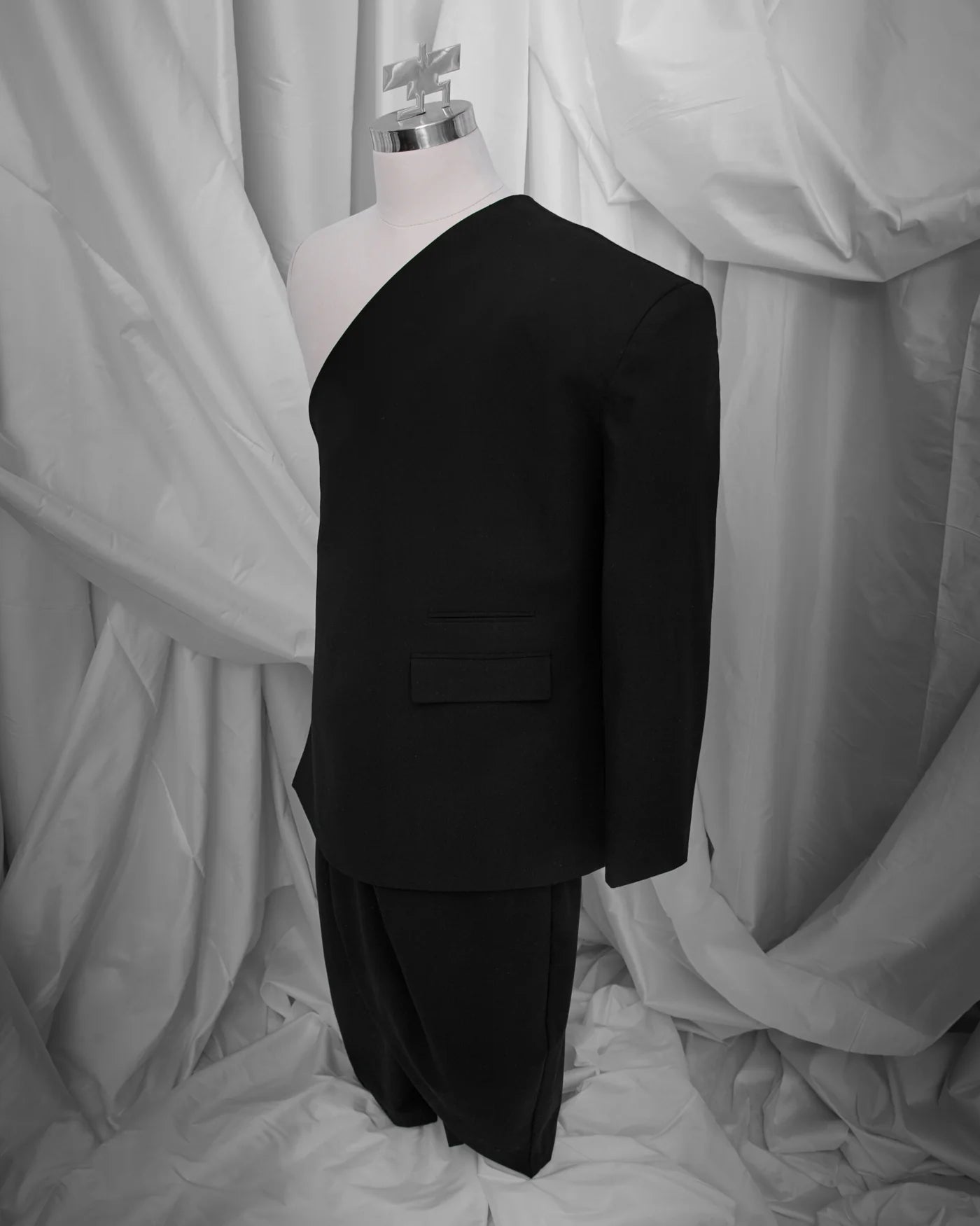 - One sided suit inspired by the silhouette of Selempang