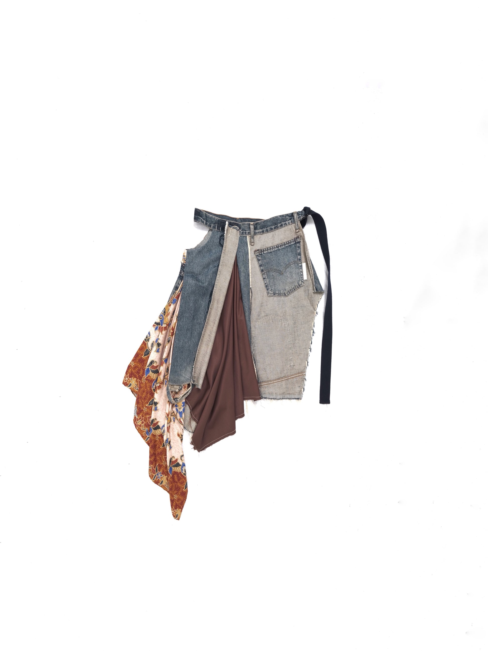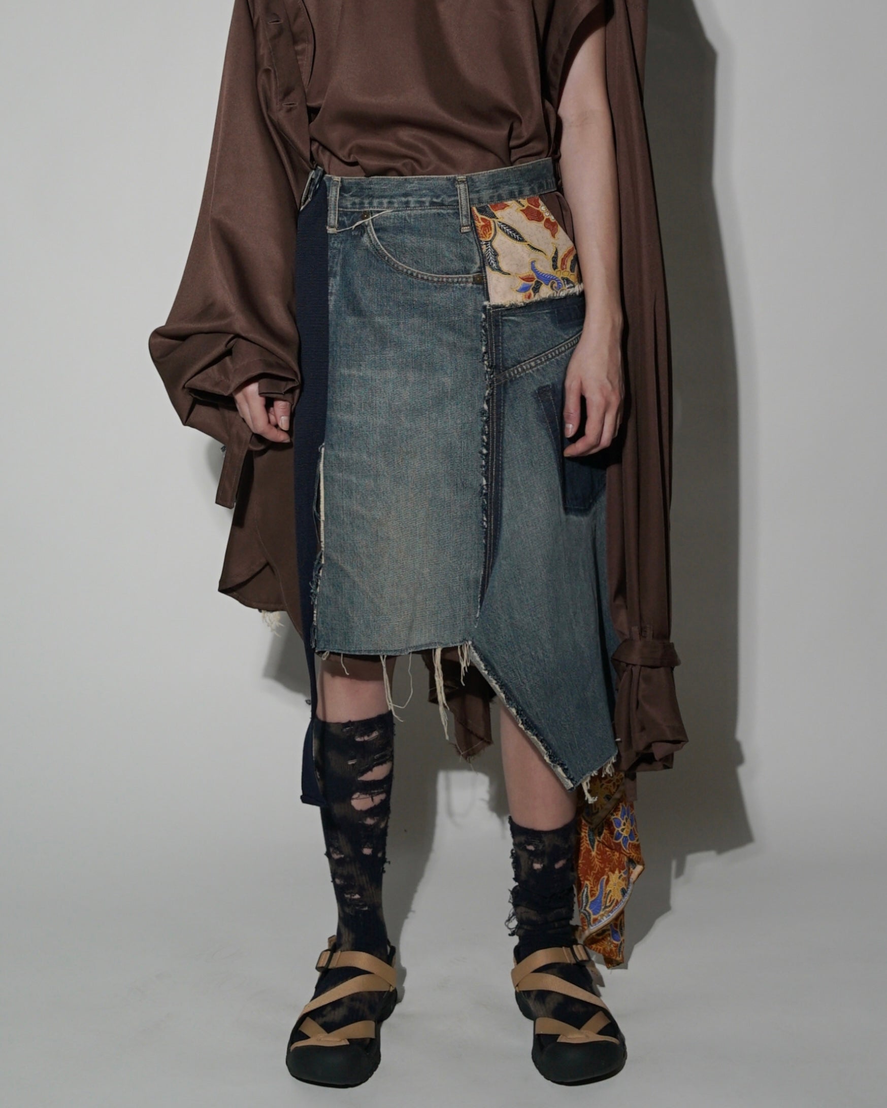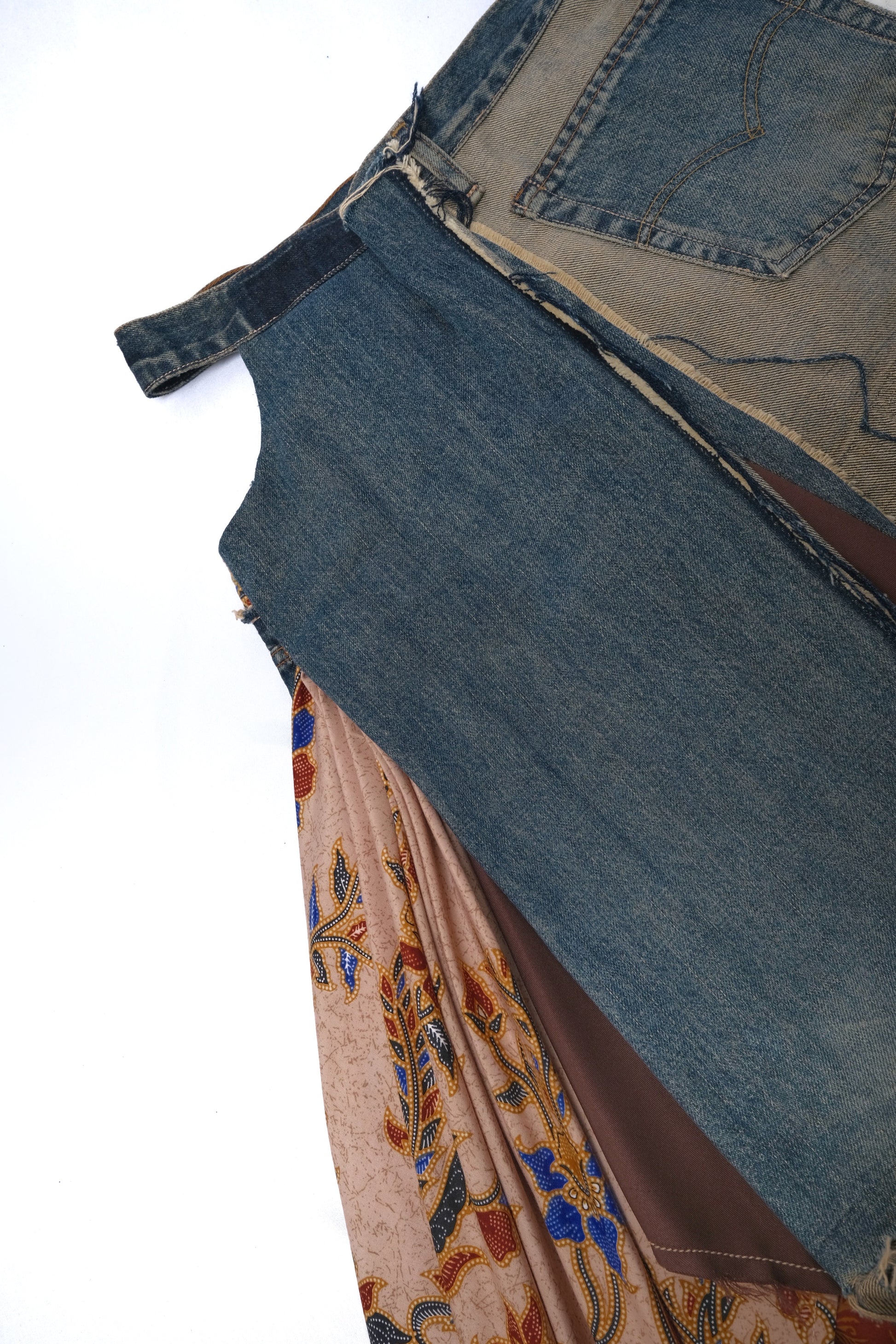 Batik + Denim Apron Skirt [ Sustainable Line ]