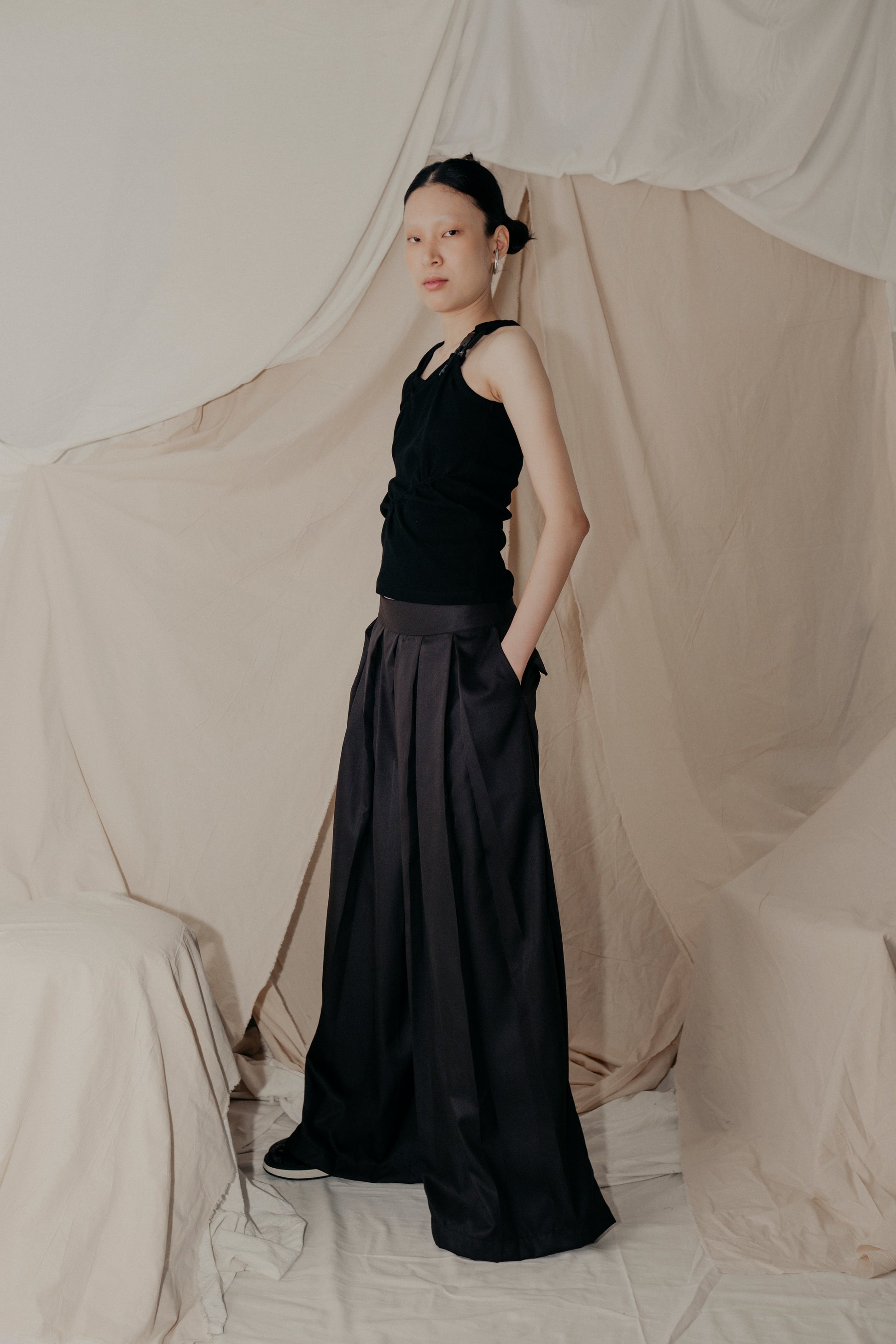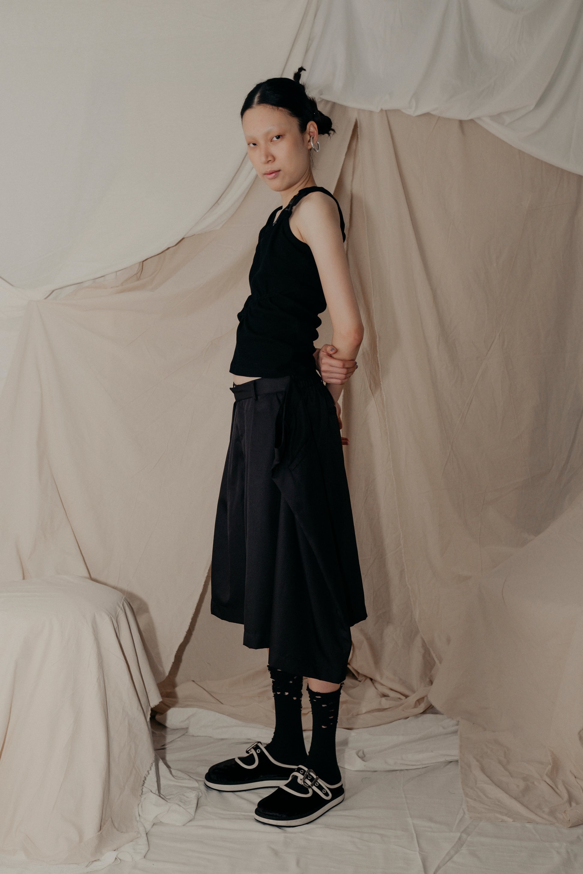 Buckle Tank Top features a sleek design with creative braid woven details and a bold buckle accent on the left strap, blending artistry and modernity. Its minimalistic silhouette and unique touches make it a versatile statement piece, perfect for elevating any outfit.