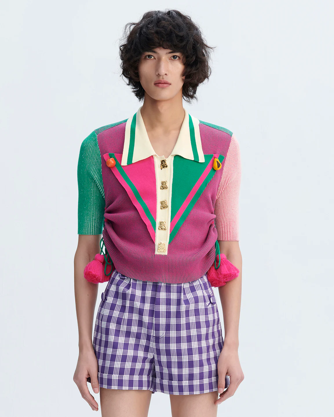 - Colourblocked in Cream, Grass Green, Magenta, and Blush Pink