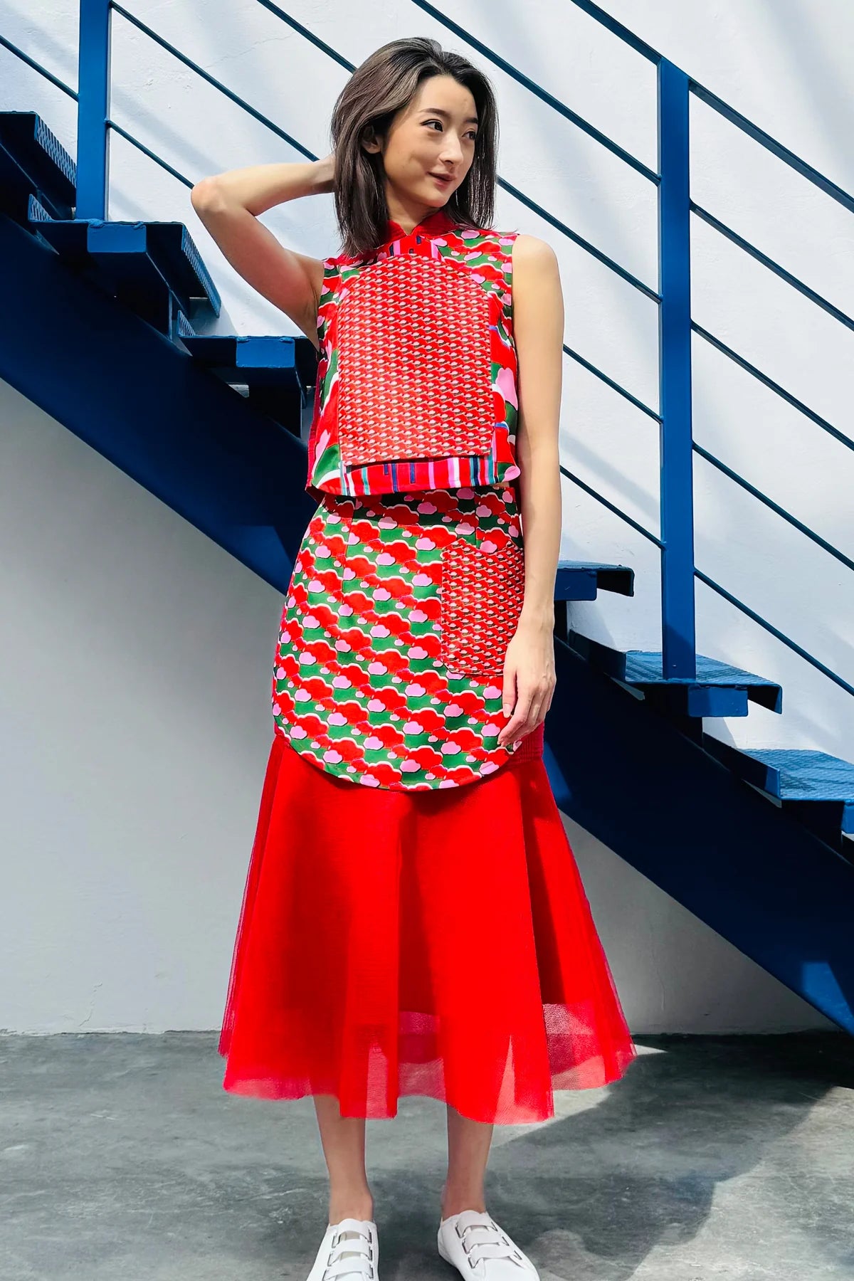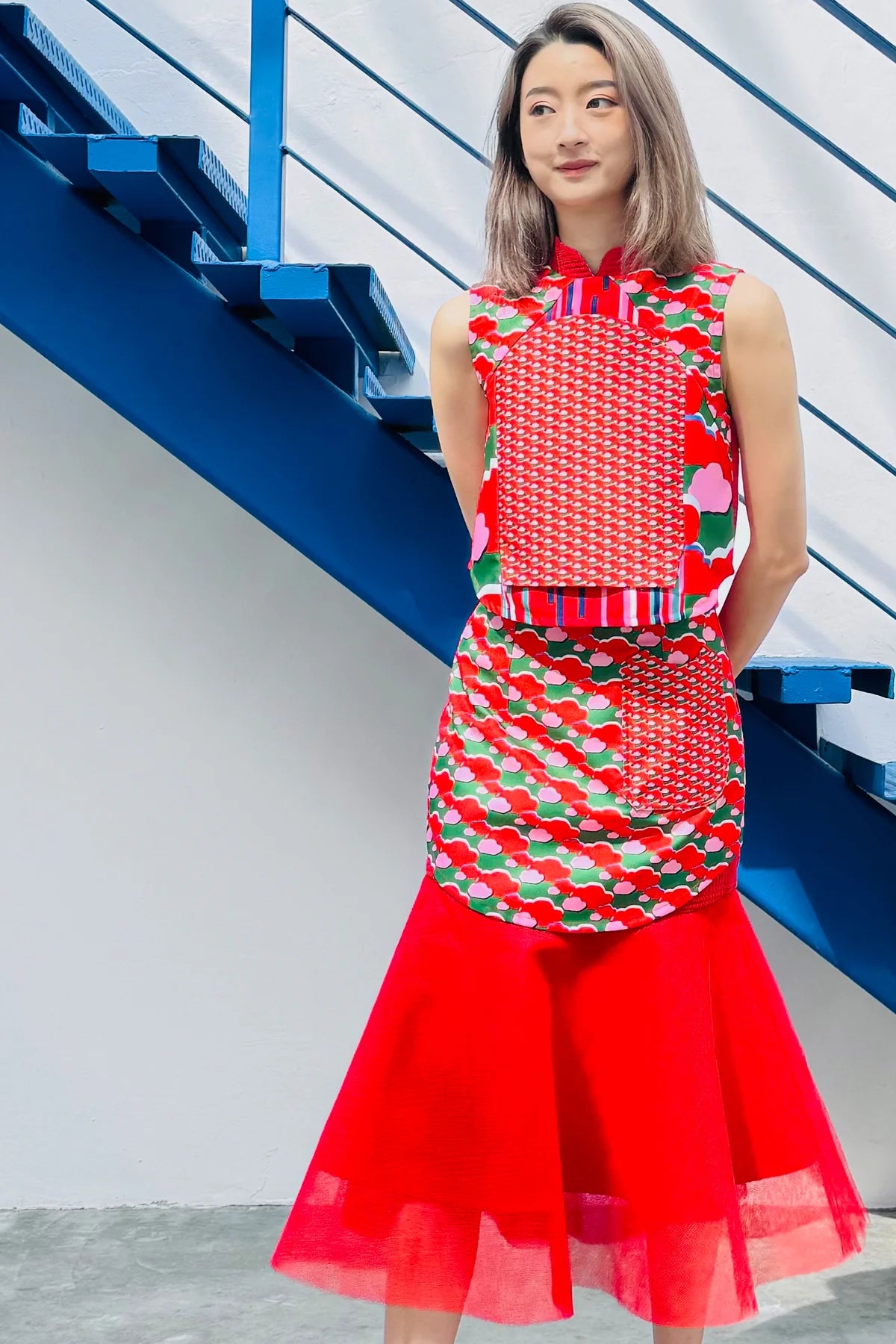 LUNAR 2024 TT04B || RED BROCCOLI CROPPED 'CHEONGSAM' TOP