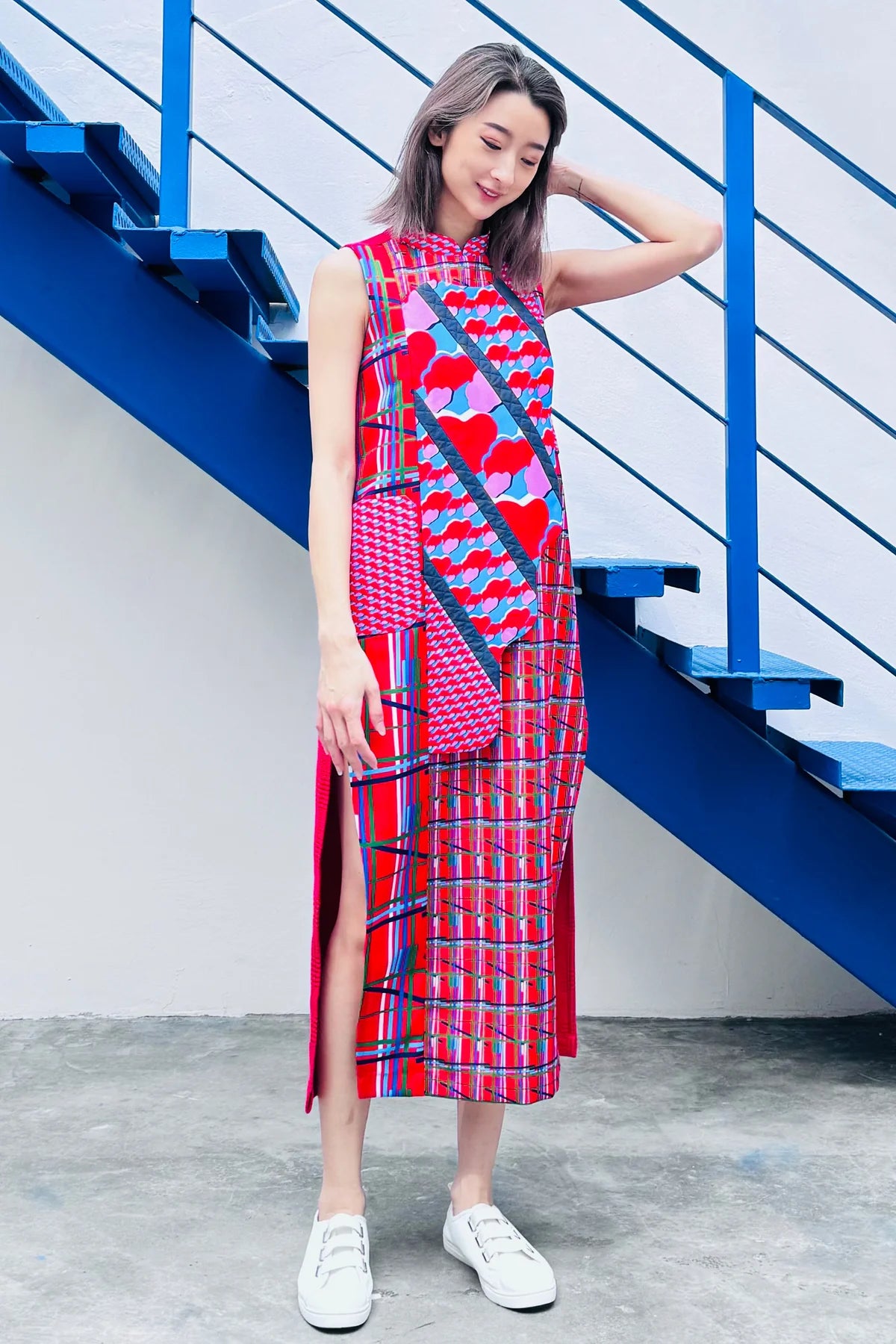 LUNAR 2024 DD03B || CURIOUS RED BROCCOLI 'CHEONGSAM' MAXI DRESS