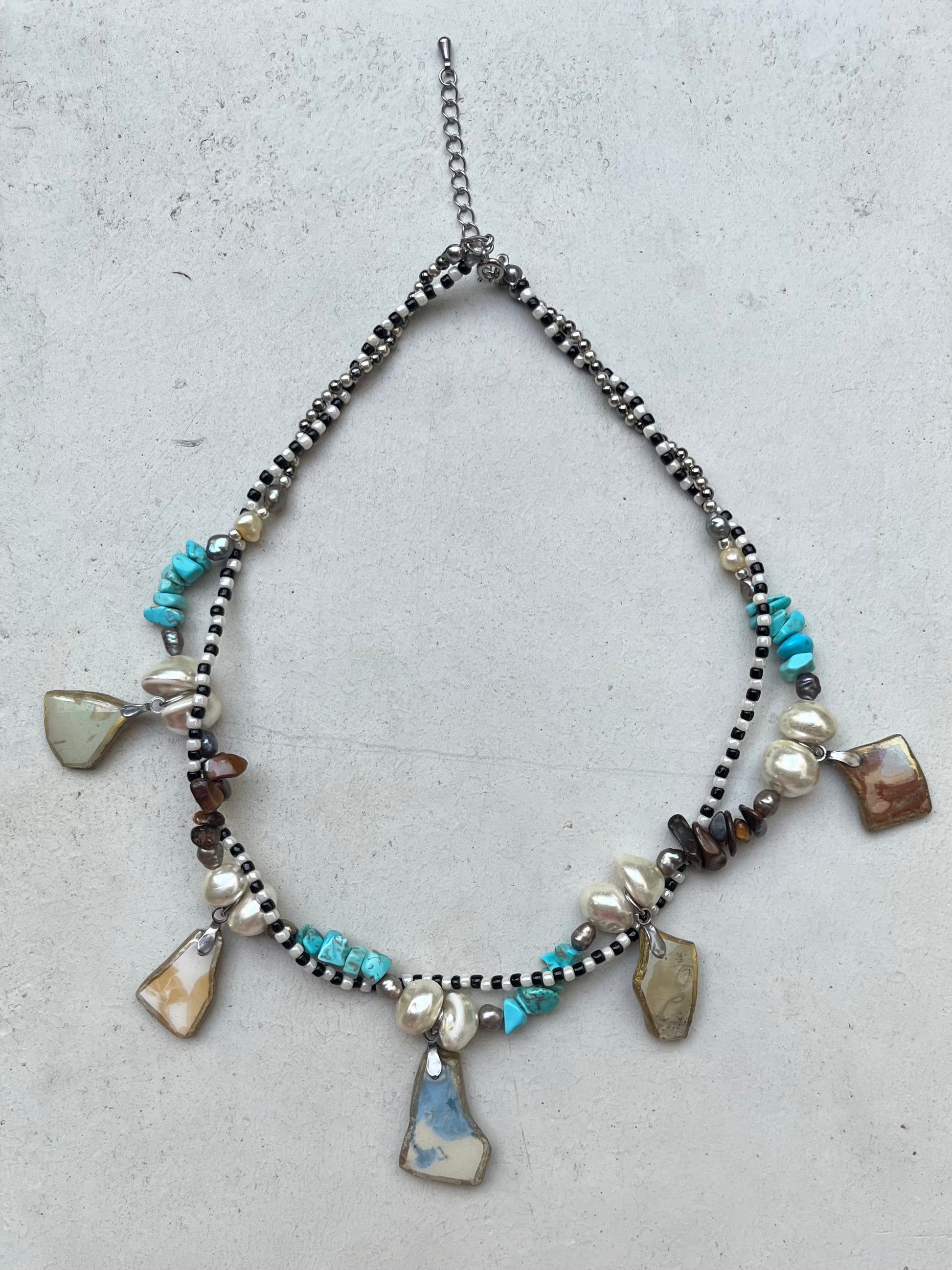 Material: mashiko porttery,surgcal stainless steel,freshwarter pearl,plastic beads