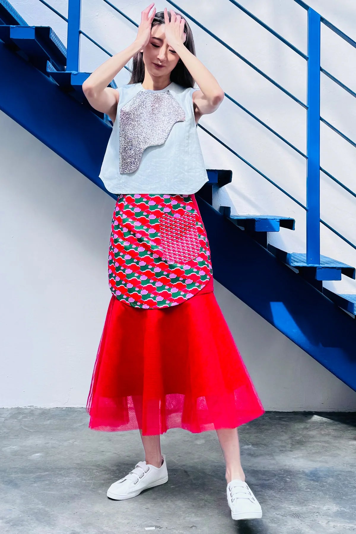 LUNAR 2024 SK01 || RED TULLE PEPLUM SKIRT