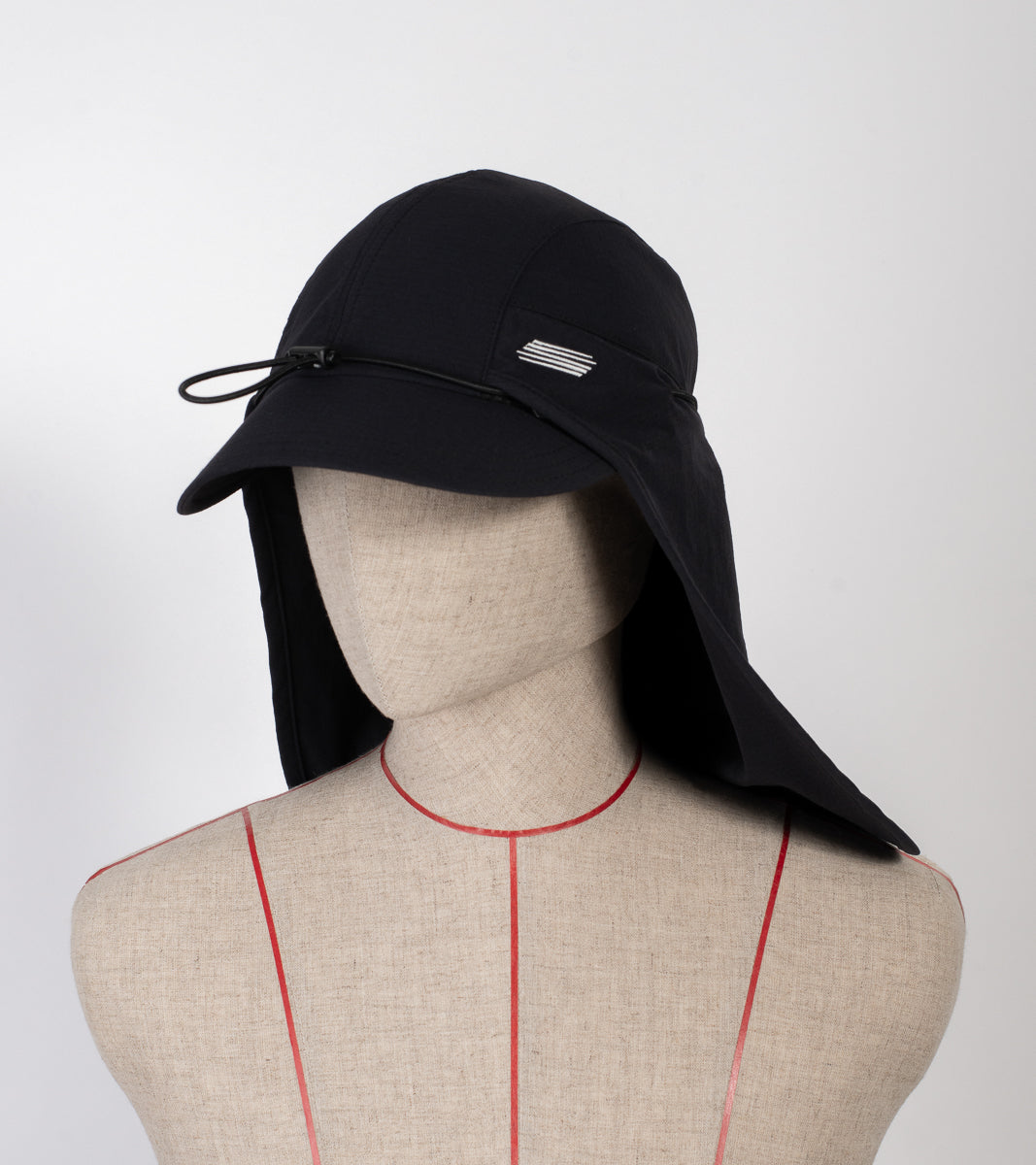 A new style of jungle hat with double-layered sides and an elasticated drawstring at the centre back, allowing it to fit perfectly to each individual head size.
