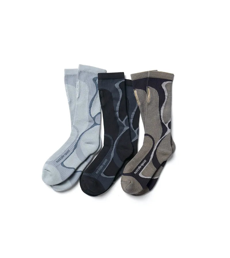 I’ve never seen these kinds of socks before, they can cover up to the calf, with an unusual curve, the strange lines winding around the entire calf, seemingly existing for a special mission, with “nozzle quiz” written on them. It’s clear that this company is preparing for something.