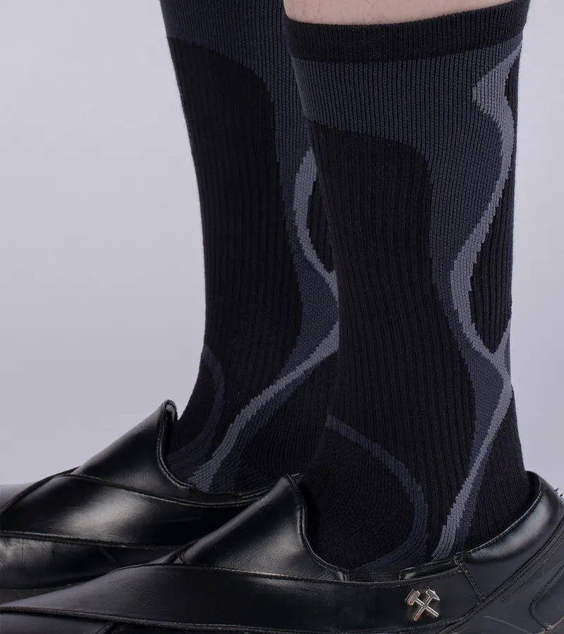 Lycra® Elastic FibersThe patented fiber from The LYCRA Company outperforms its competitors in stretch and recovery, redefining comfort, fit and freedom of movement.100% Azo Free CertificateAzo dye releases carcinogen when in contact with the human body. We are committed to an Azo free dying process to meet international safety standards and prevent adverse effects on the environment and the human body.Machine LinkingThe toe of the sock is machine-linked, removing any discomfort from friction against phalanges and ensuring comfort after a long day in your socks.
