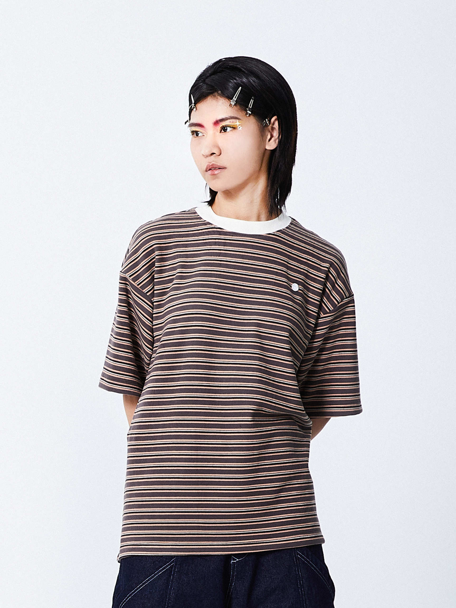 The Cozy stripes emblem tee has a cozy feel and a minimal stripes look. The tee has embroidery icon patches that add some charm and personality. The Cozy stripes emblem tee is a casual and cute tee that can be worn with any outfit