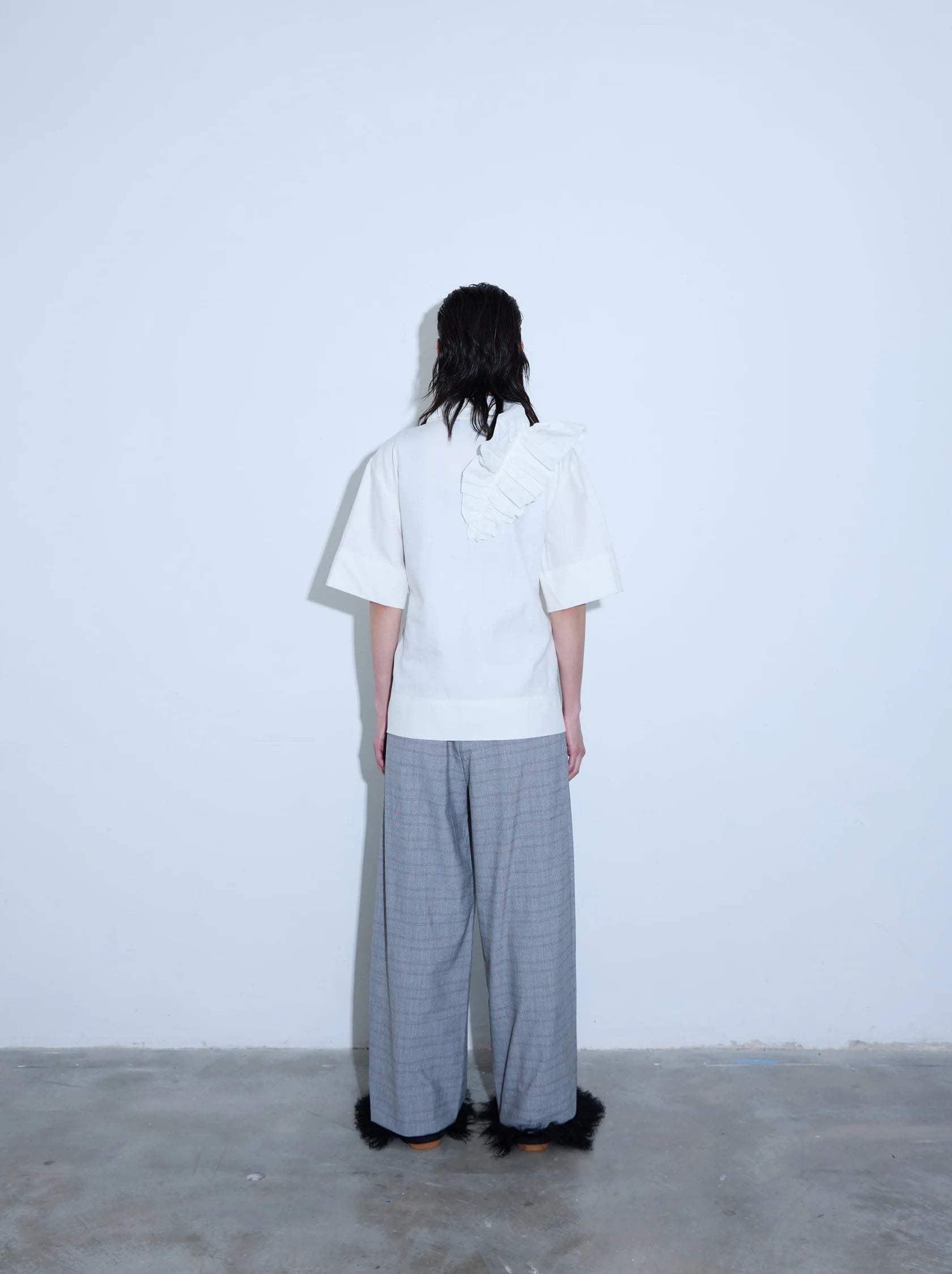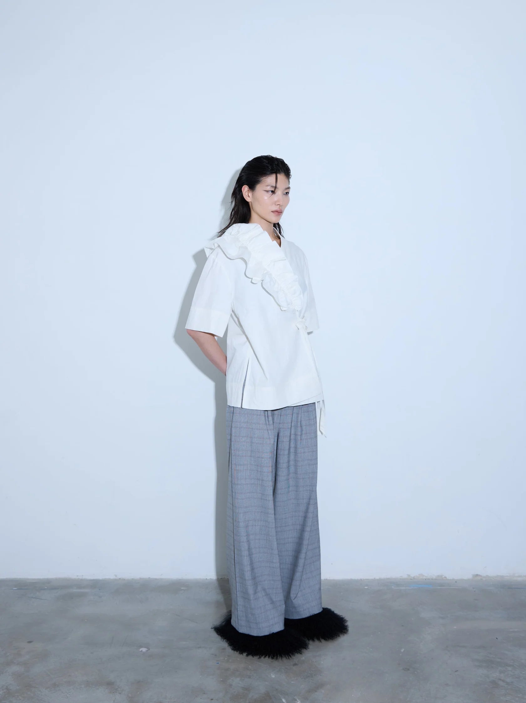 Tailored pant in Tencel spandex and cotton. Relaxed fit with a high waist and adjustable buckle to adjust the tightness of your preference. Front zip closure and functional pockets.
