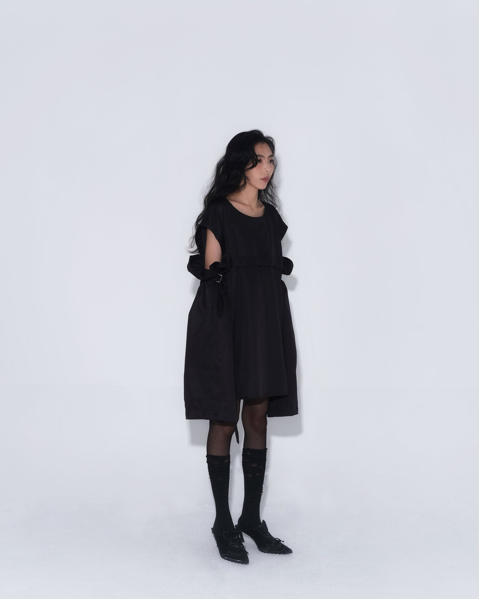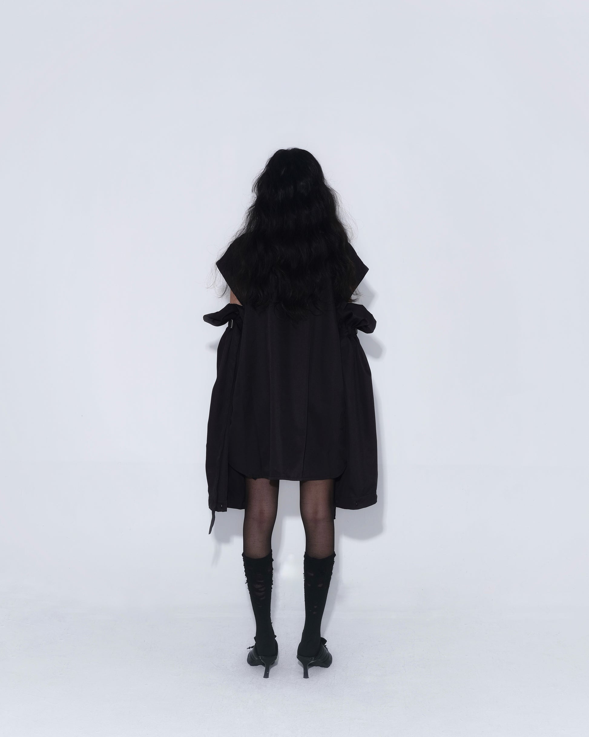 Designed for versatility, this detachable-sleeve shirt effortlessly adapts to your style. Featuring a horizontal front button closure, it offers a sleek, modern aesthetic while allowing for unique styling options. Wear it cropped for a bold, contemporary feel or keep it full-length for a classic silhouette with the open-back styling adds an unexpected edge, making it perfect for layering or wearing on its own. The long sleeves can be removed, transforming the look from a full-sleeve statement to a chic sleeveless top. Functional side pockets complete the design, blending style and convenience for everyday wear.