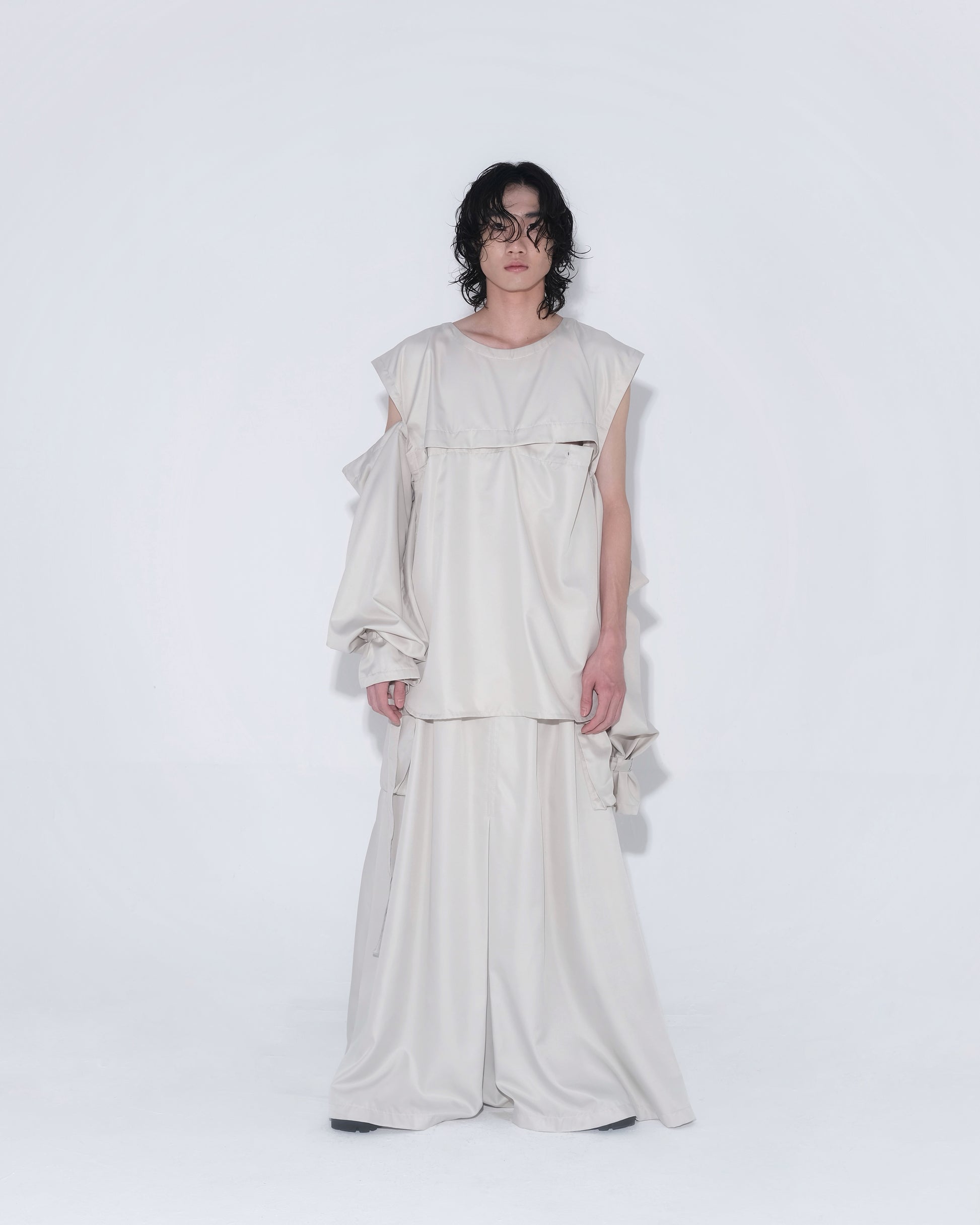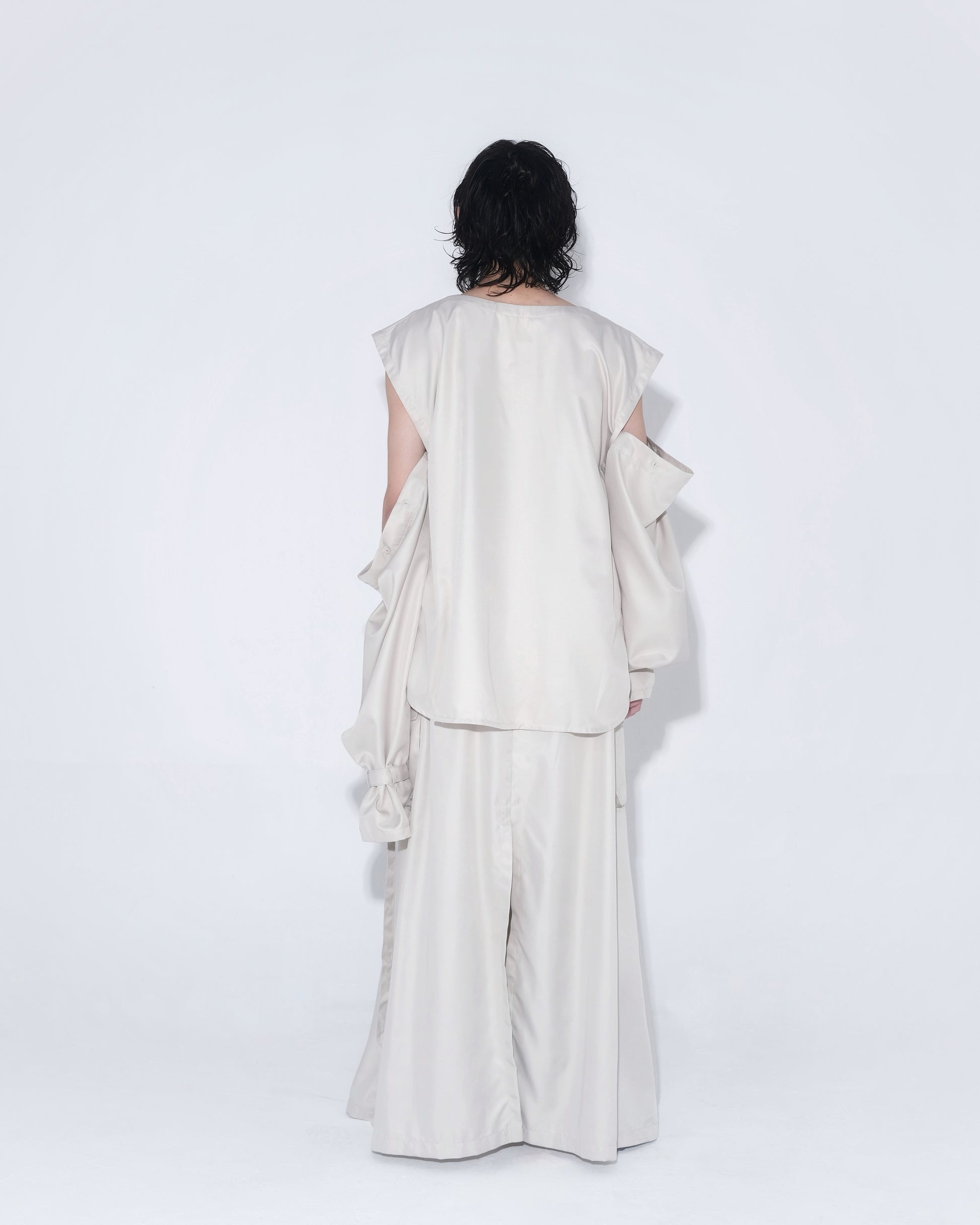 Designed for versatility, this detachable-sleeve shirt effortlessly adapts to your style. Featuring a horizontal front button closure, it offers a sleek, modern aesthetic while allowing for unique styling options. Wear it cropped for a bold, contemporary feel or keep it full-length for a classic silhouette with the open-back styling adds an unexpected edge, making it perfect for layering or wearing on its own. The long sleeves can be removed, transforming the look from a full-sleeve statement to a chic sleeveless top. Functional side pockets complete the design, blending style and convenience for everyday wear.