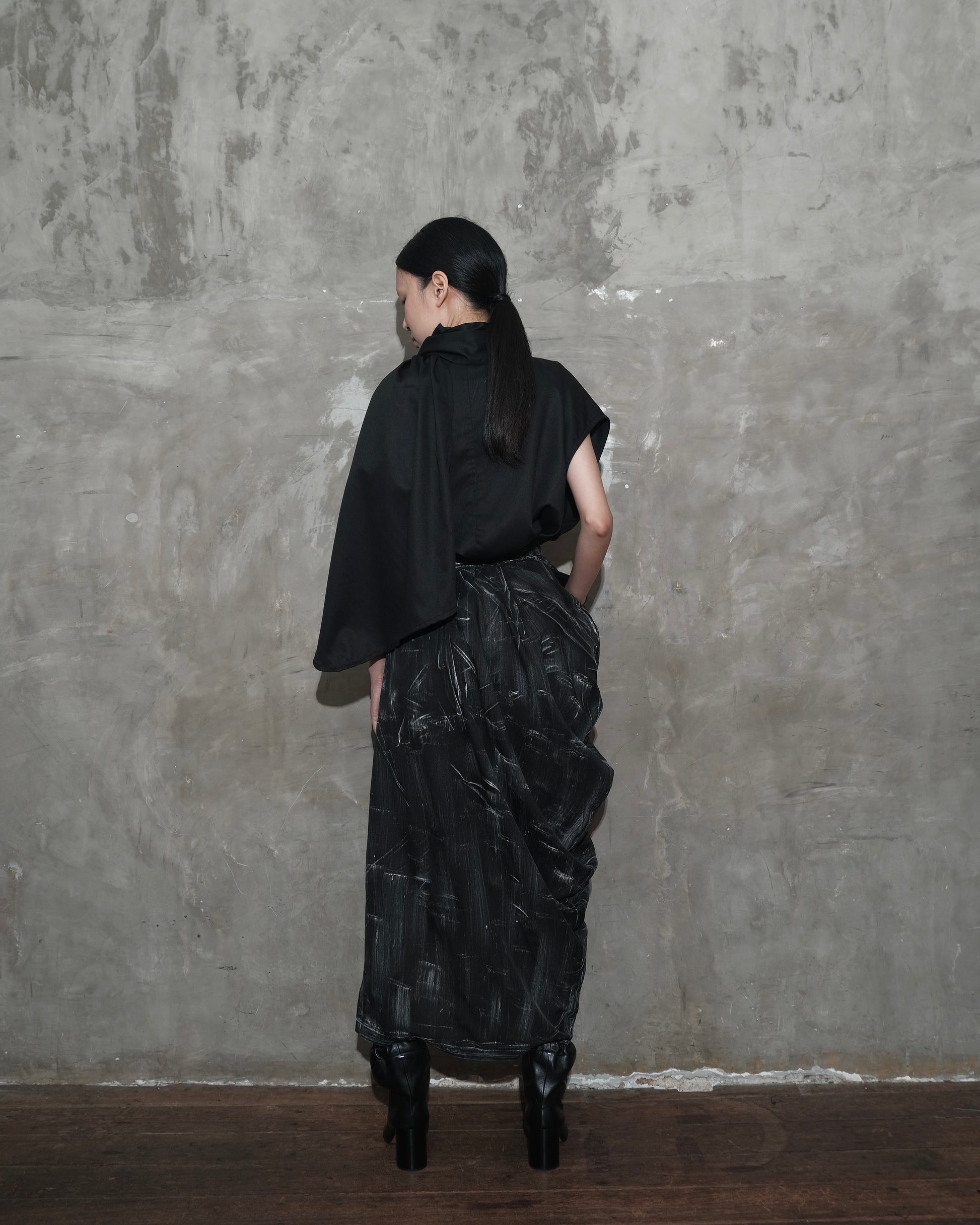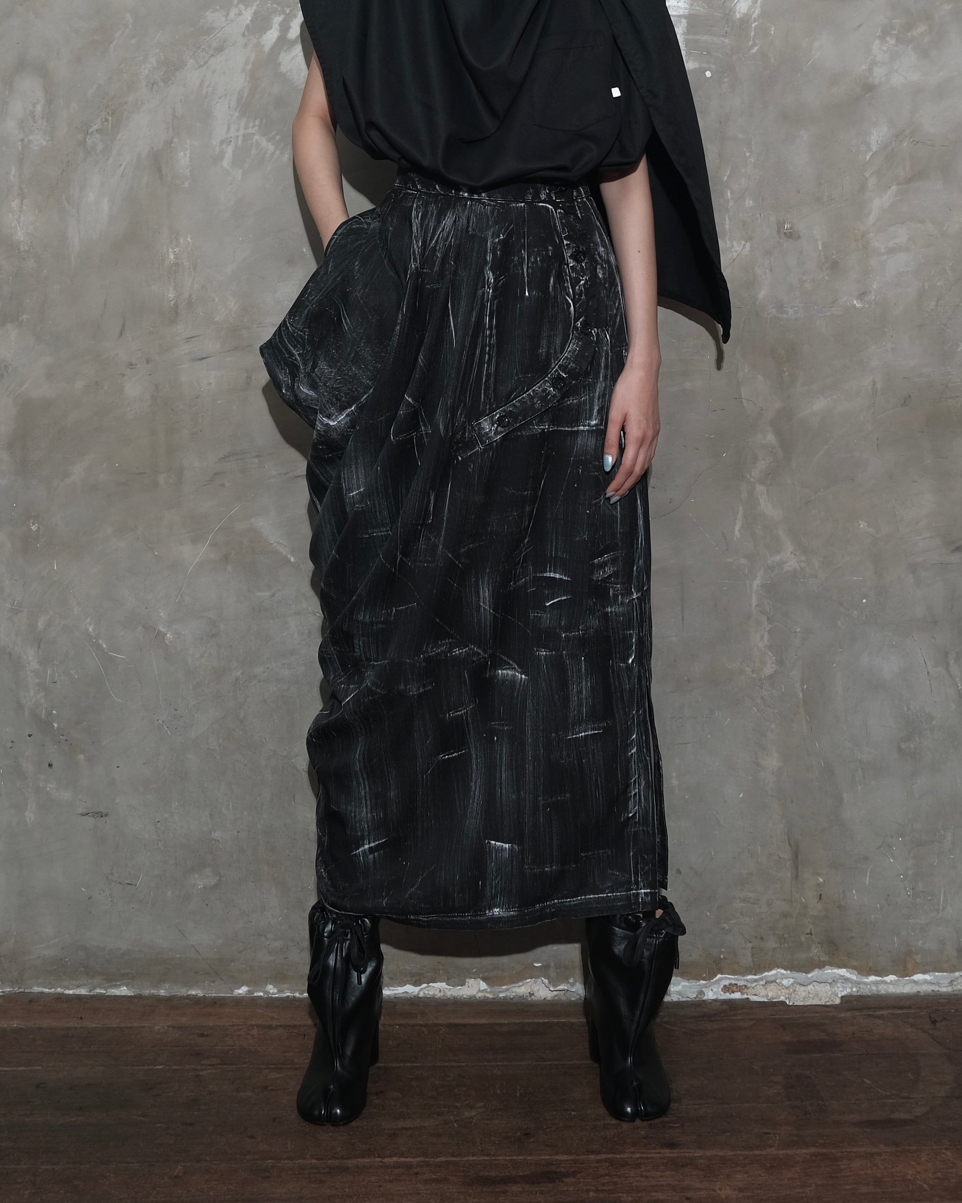 Draped Sarong Skirt in Black Chaos
