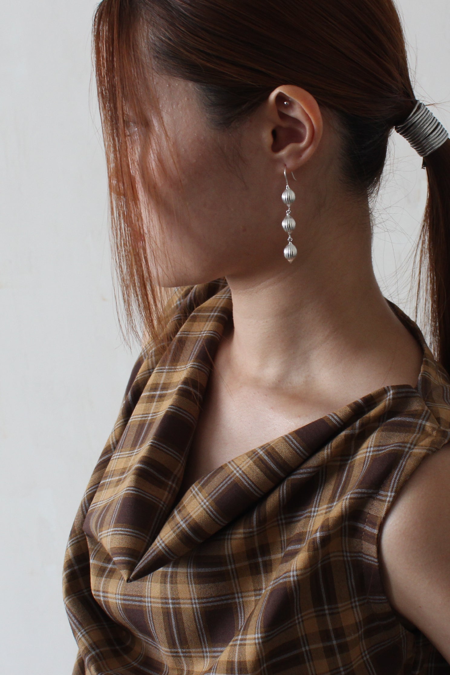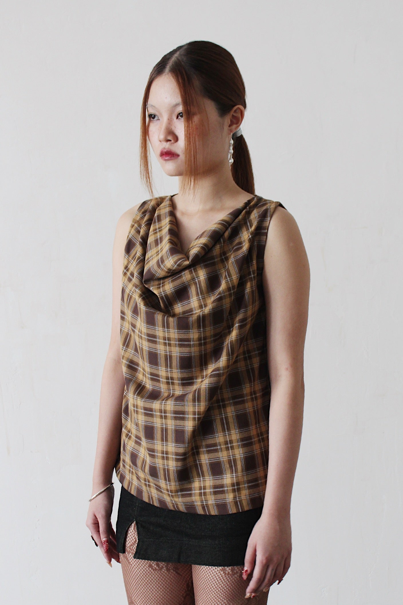 The classic draped tank is reinterpreted for SS25 with thicker shoulder straps in a plaid colourway.