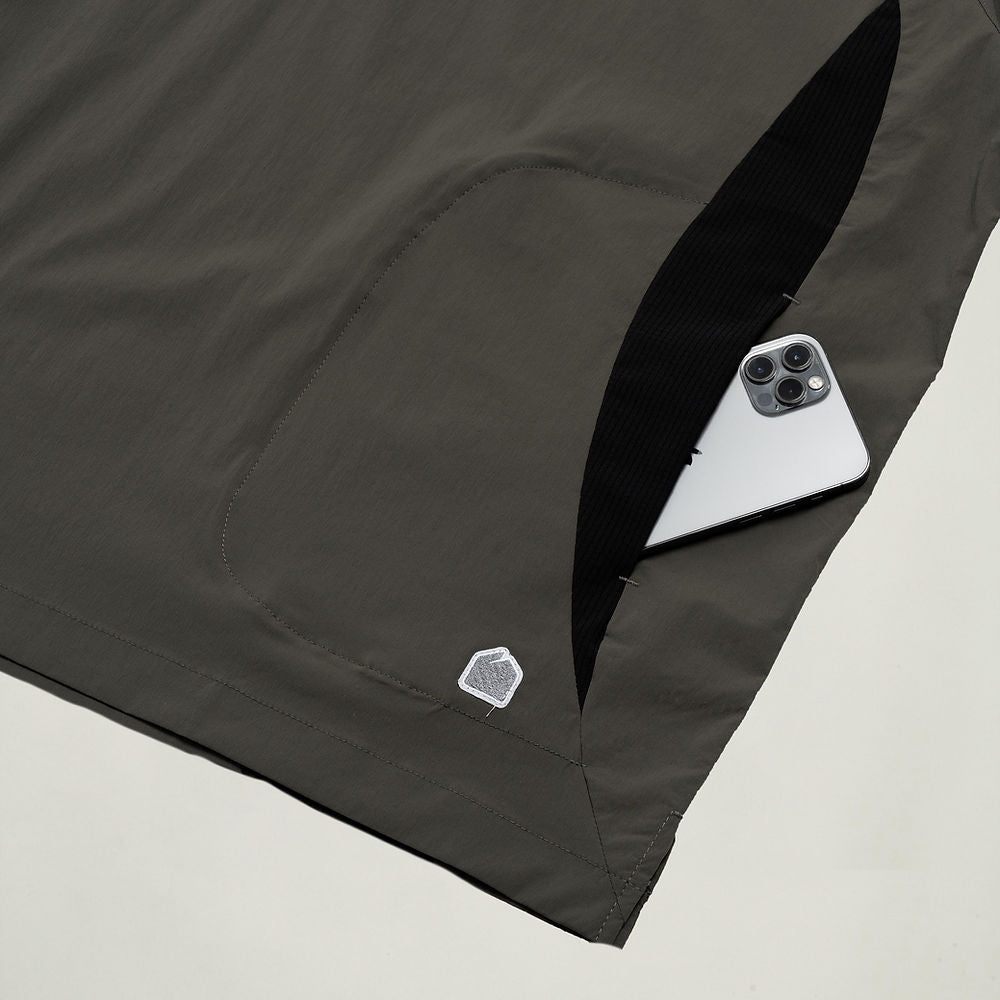 - Hidden pouch pocket at front