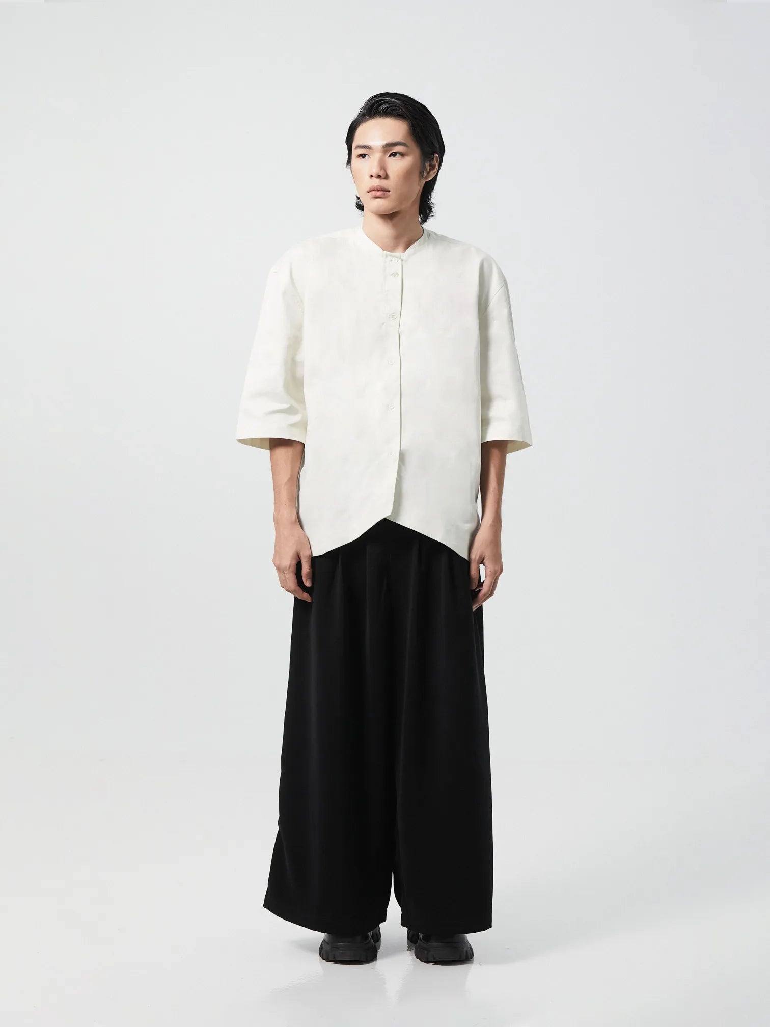 Maxi Hakama Wide Leg Pants - a fusion of comfort and contemporary style transcending gender boundaries. Embrace the bold silhouette with extra-wide legs, exuding a fashion-forward, androgynous flair. The elastic waistband ensures practicality and a personalized fit. Adding a touch of modern minimalism, discover subtle pleats in the front that elevate the overall design.