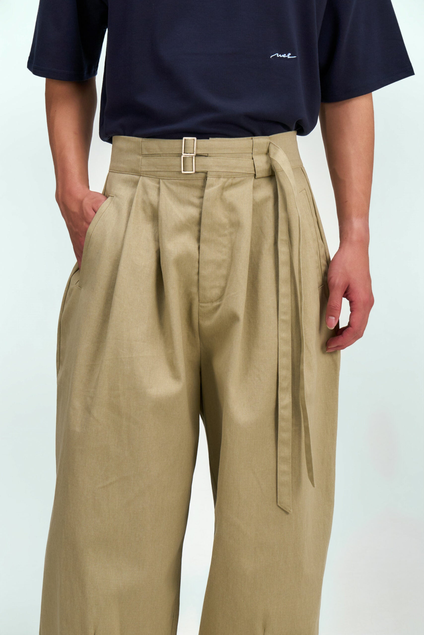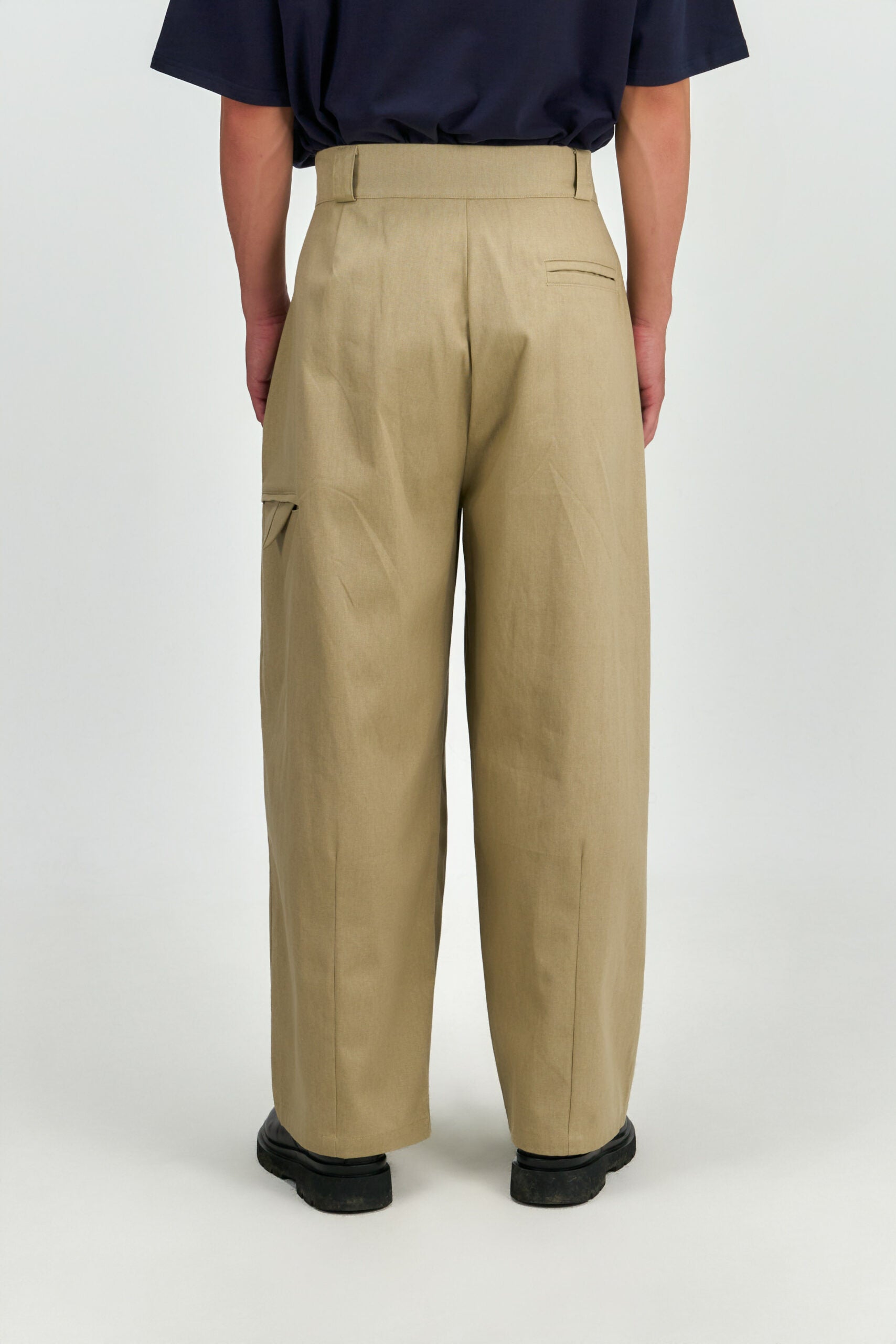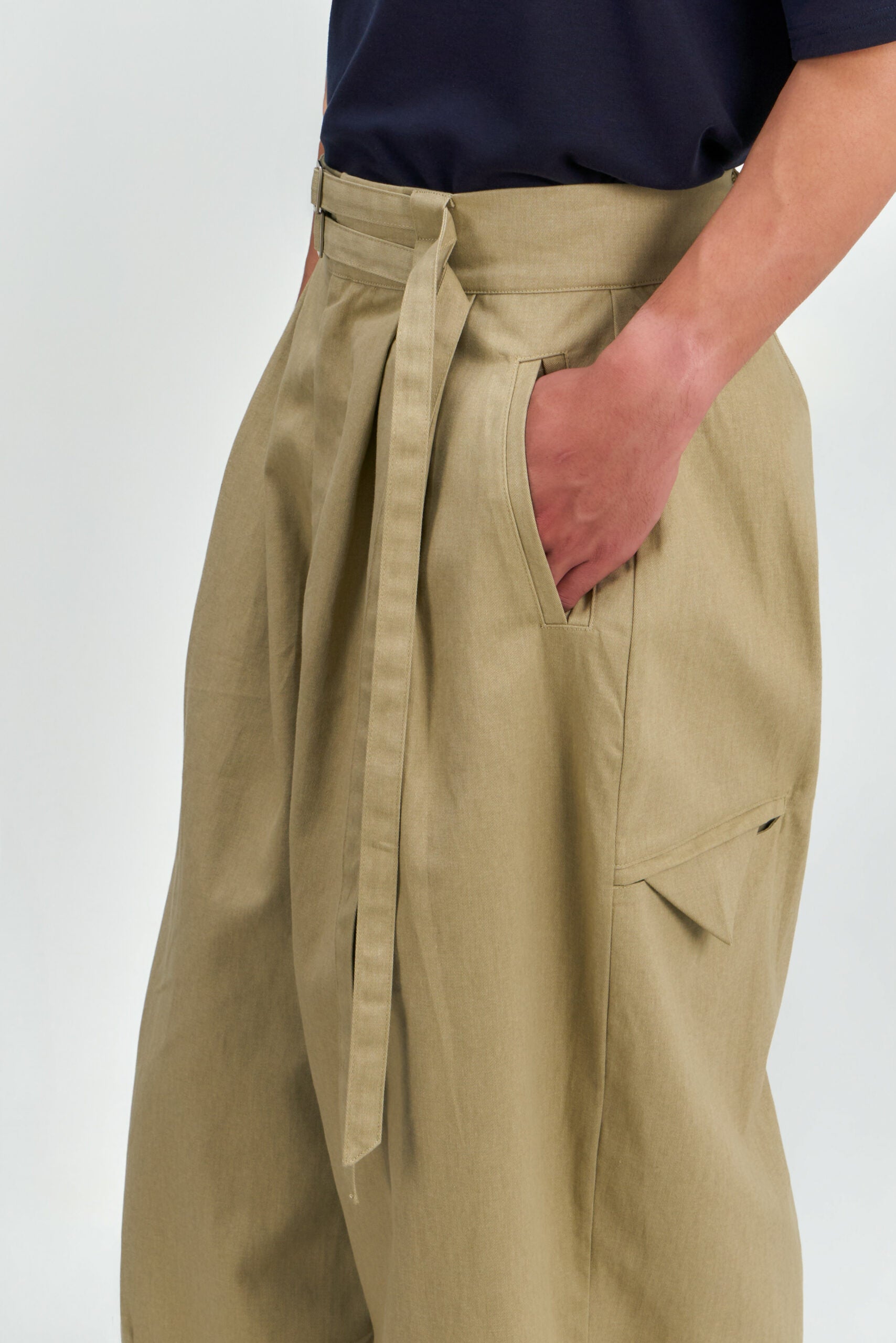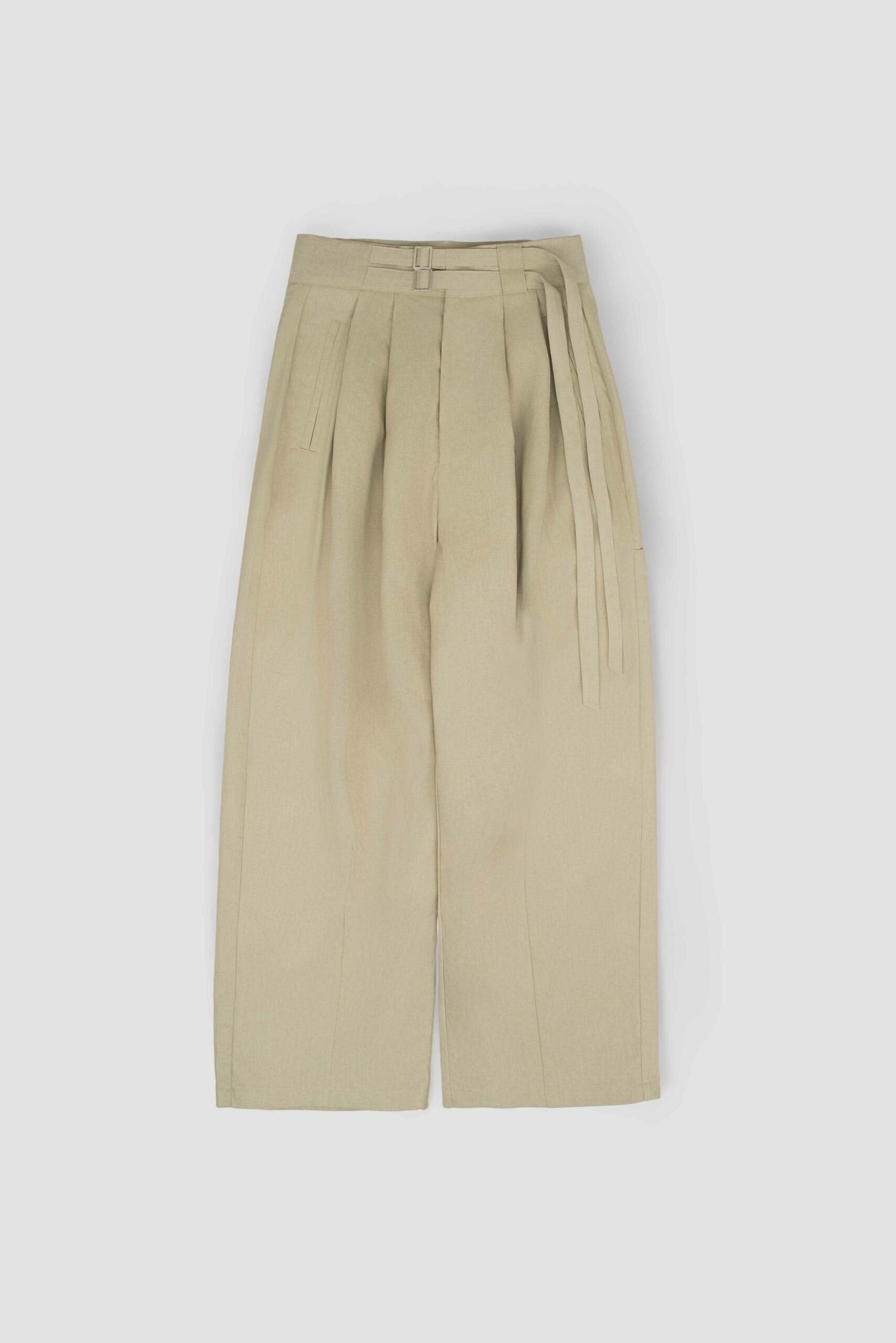 Gender Neutral Double Belted Long Trousers (Beige)