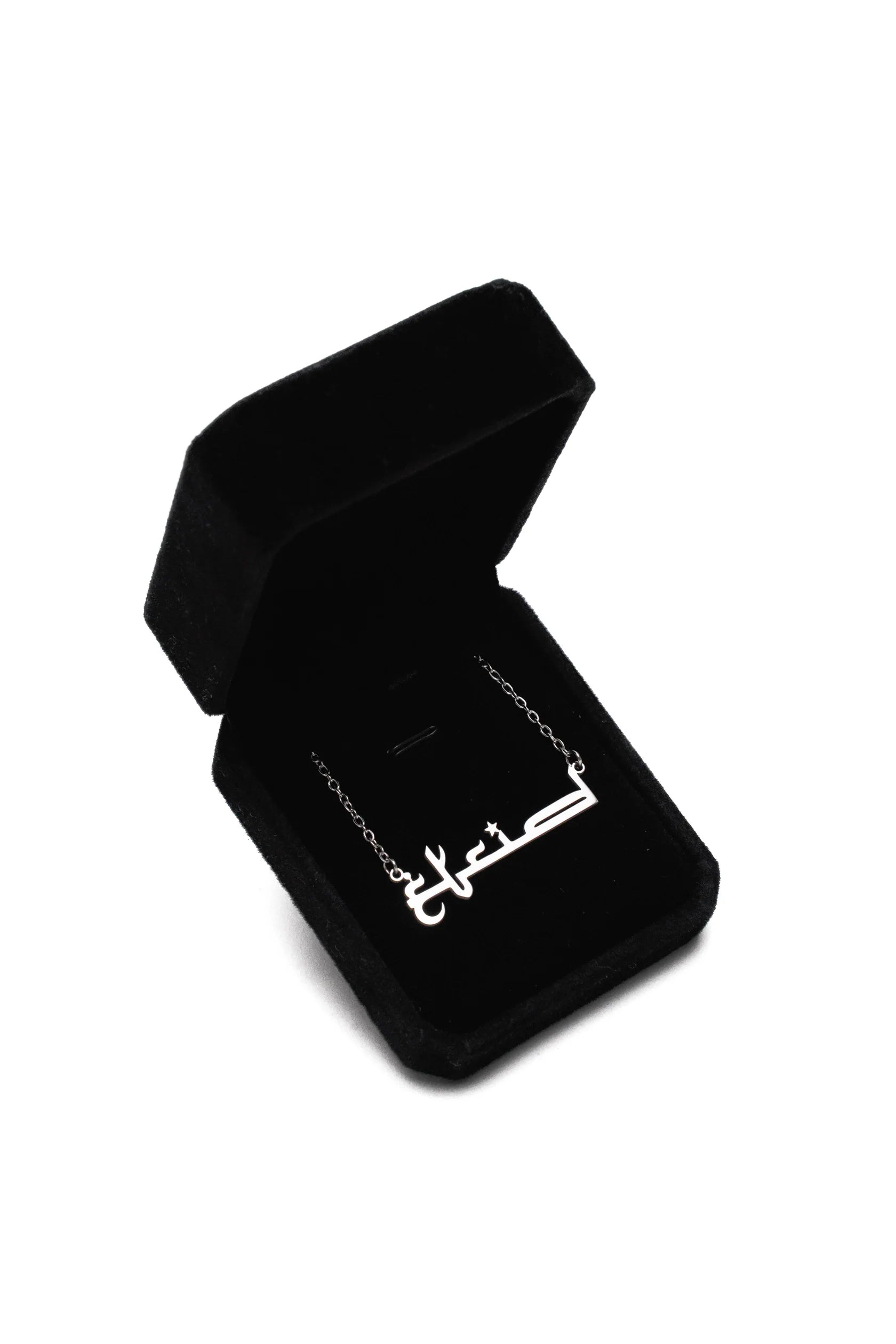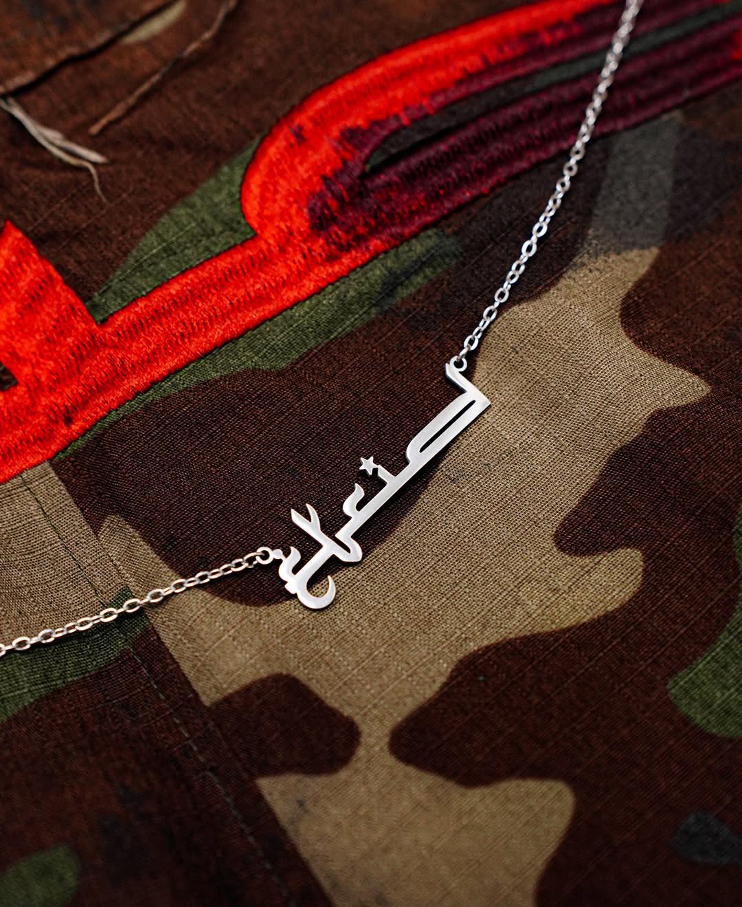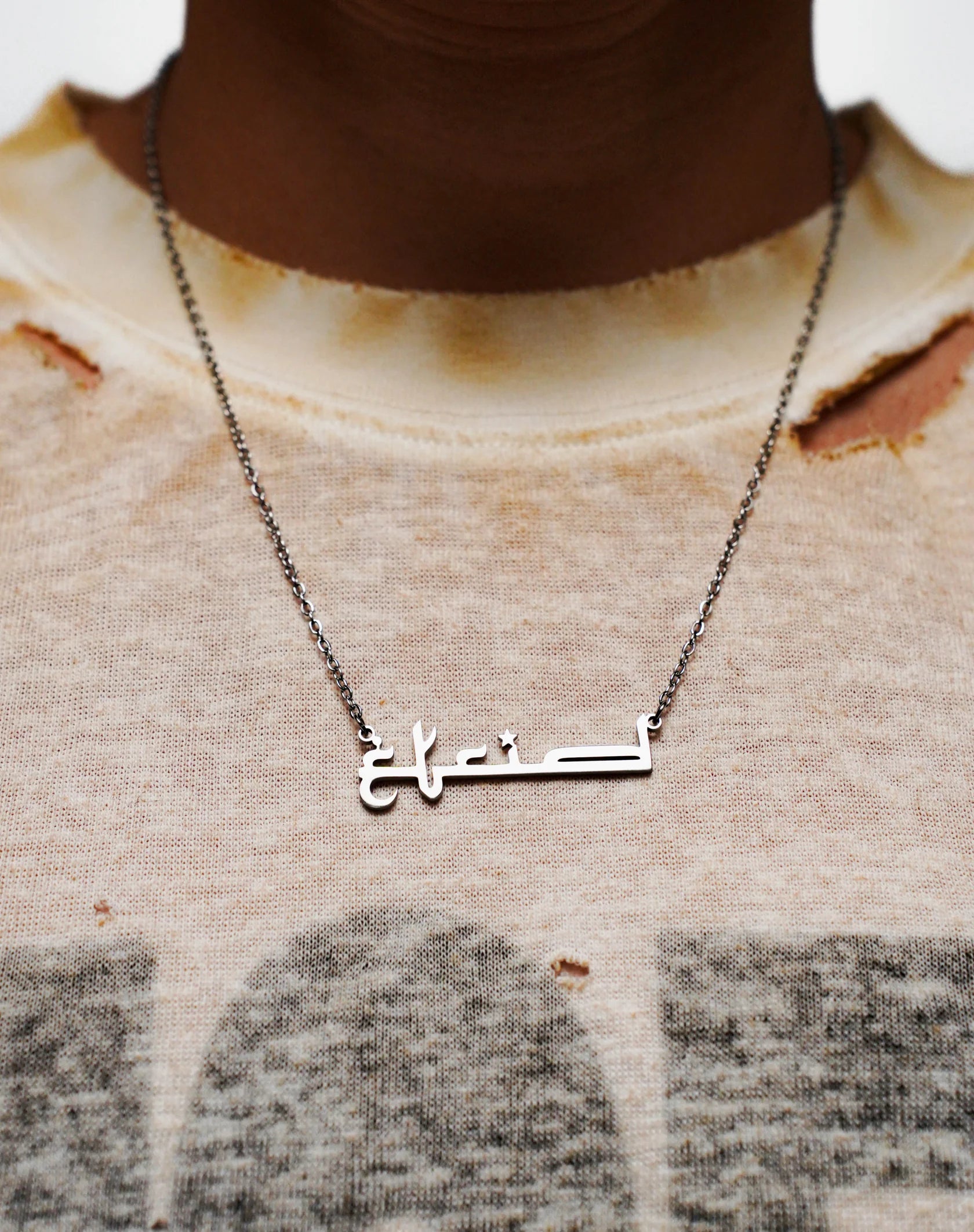 - Minimalist chain design with a pendant featuring HA ETCID Arabic script