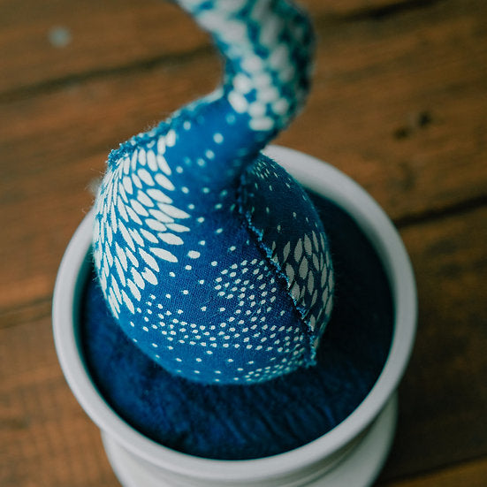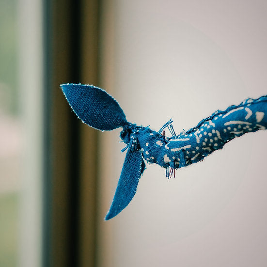 Indigo-dyed and Katazome fabric-based, curated, and montage mending.