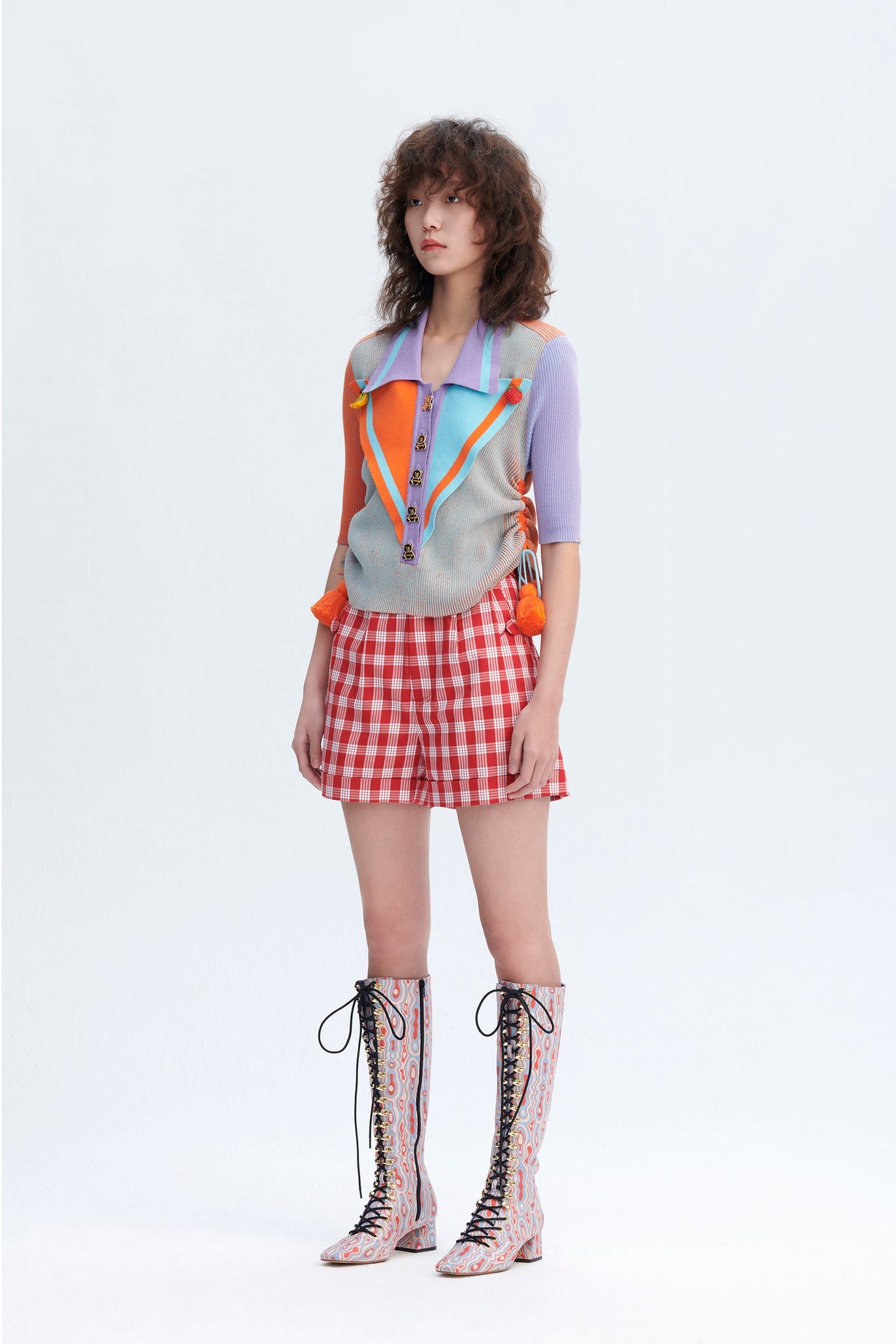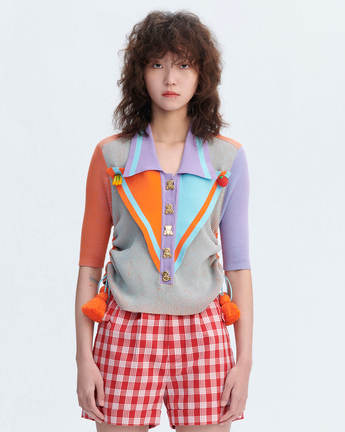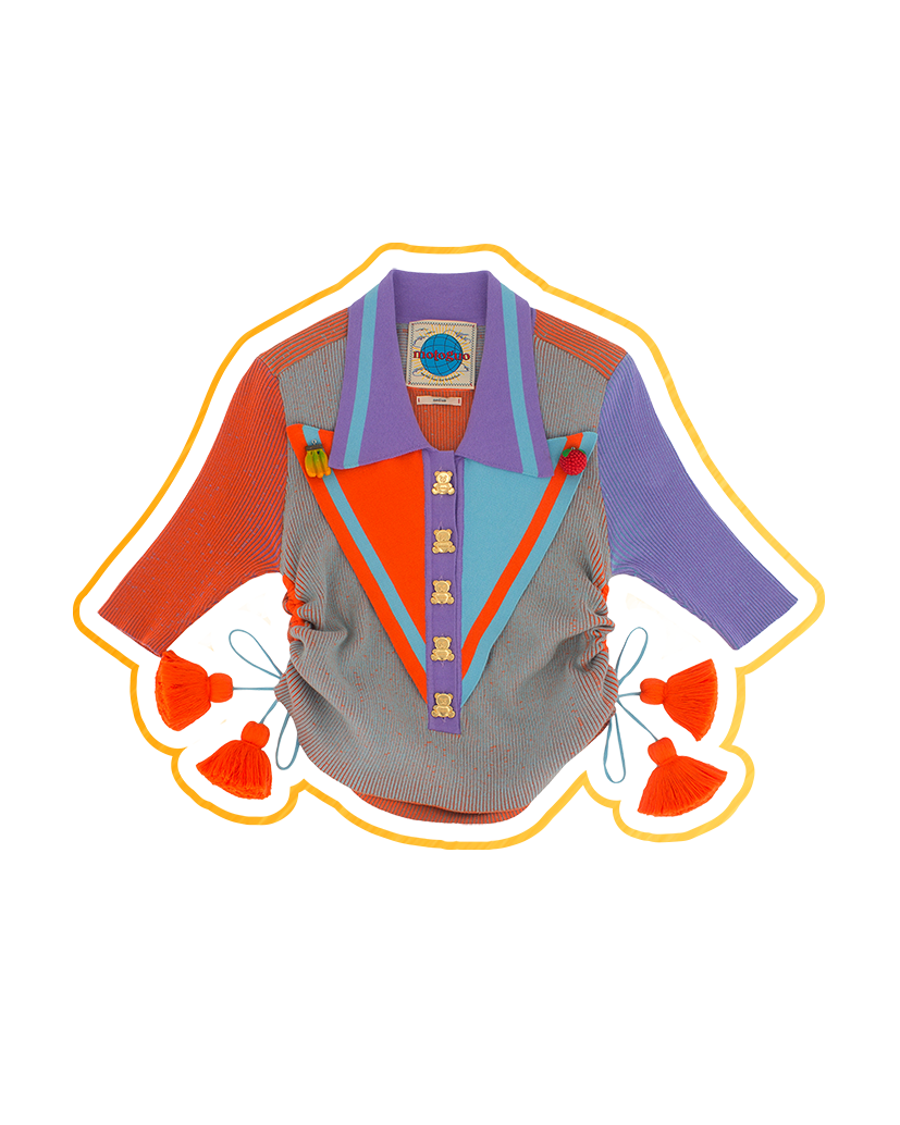 - Colourblocked in Tangerine, Lake Blue, Powder Purple and Grey