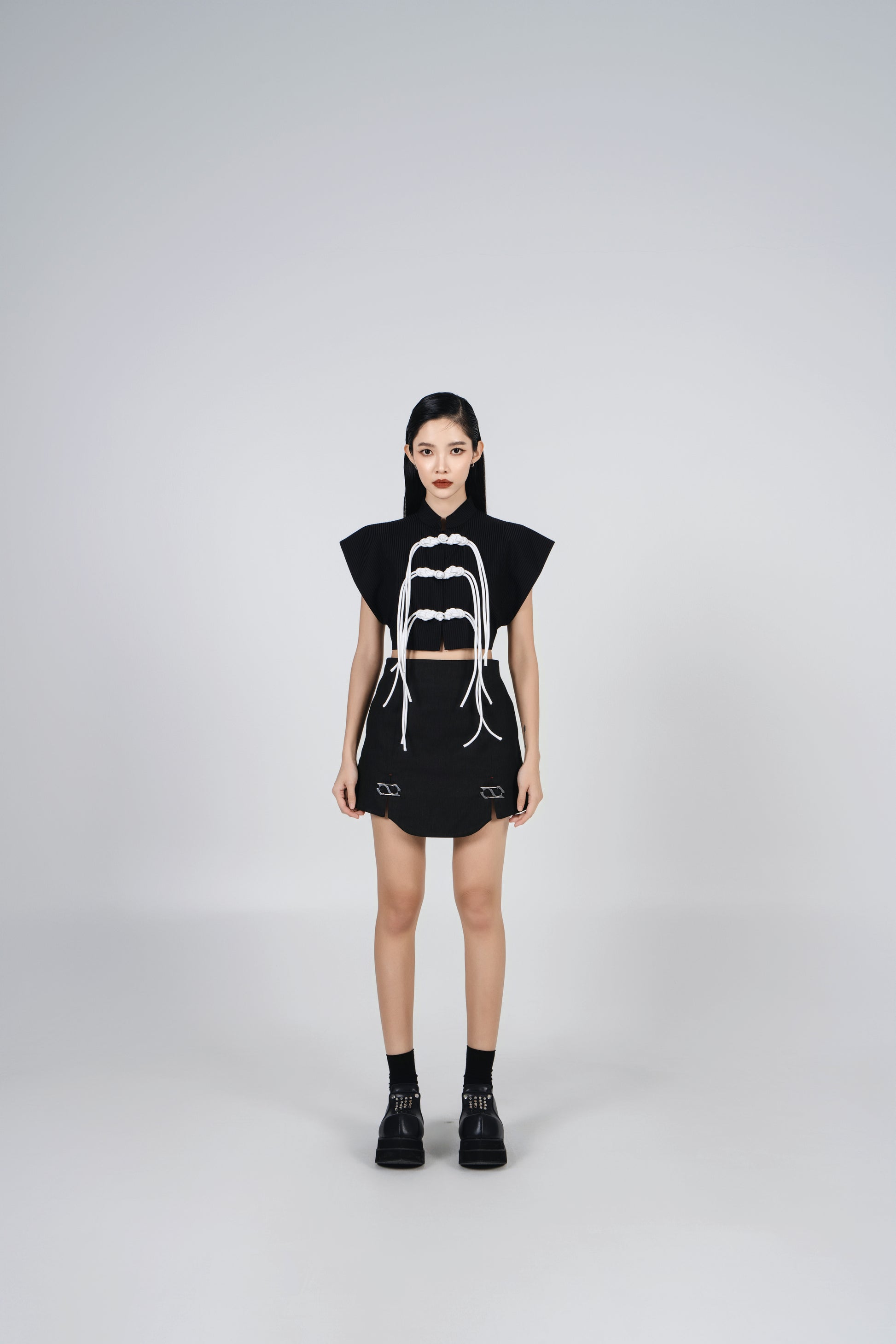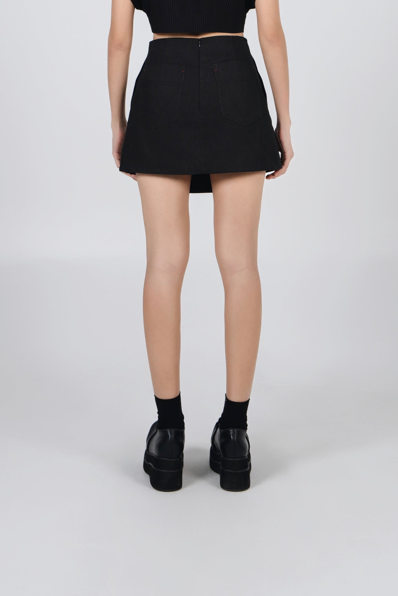 Edgy and contemporary, this denim mini skirt features unique 'S' buckle and front slit details, adding a bold, modern touch to your look. Crafted from durable denim fabric, it offers a structured yet flattering fit that complements your silhouette. Perfect for pairing with crop tops, blouses, or oversized layers, this statement skirt effortlessly combines style and attitude for any occasion.