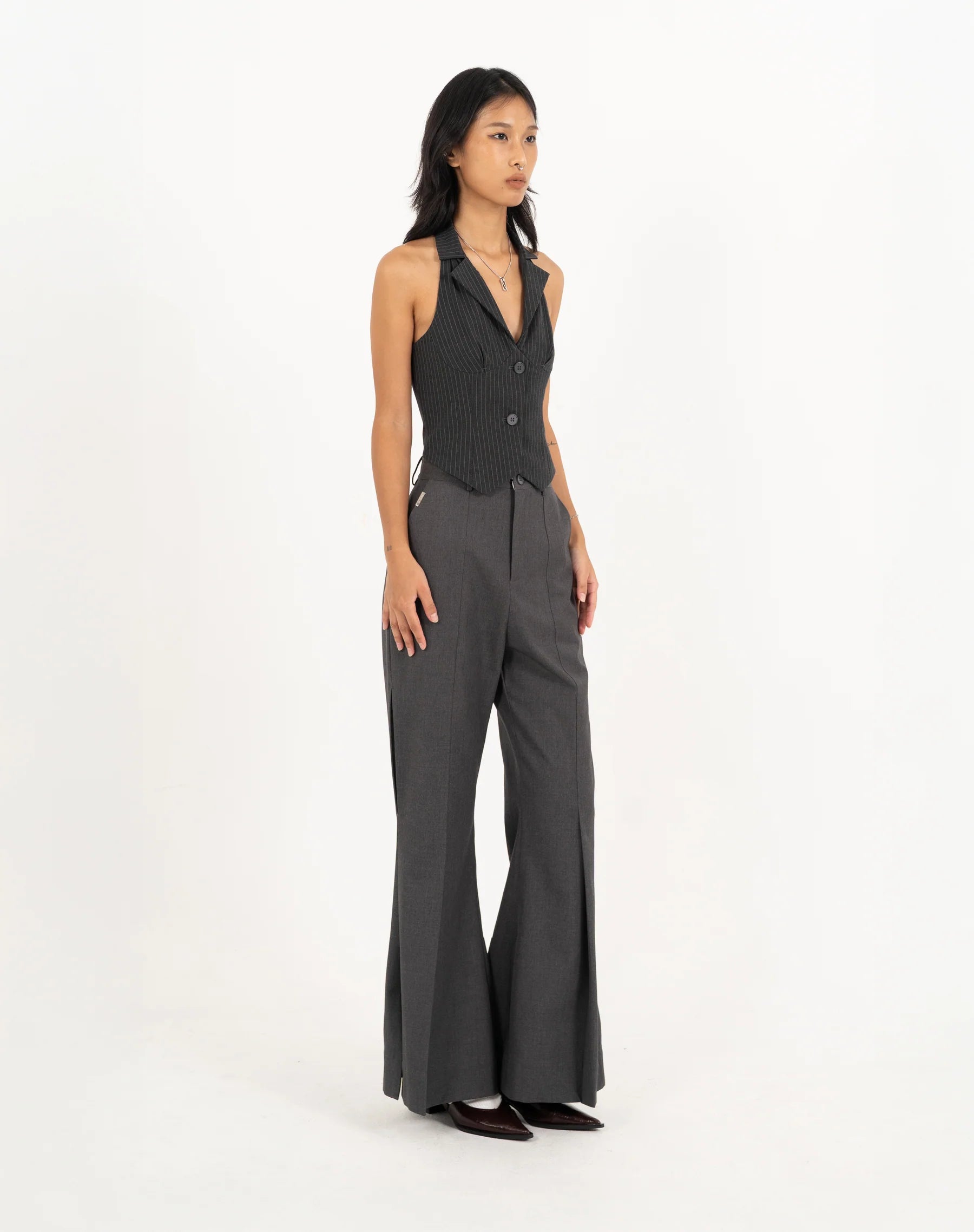 N E O CH.1 HALTER BUTTONED TOP - Grey
