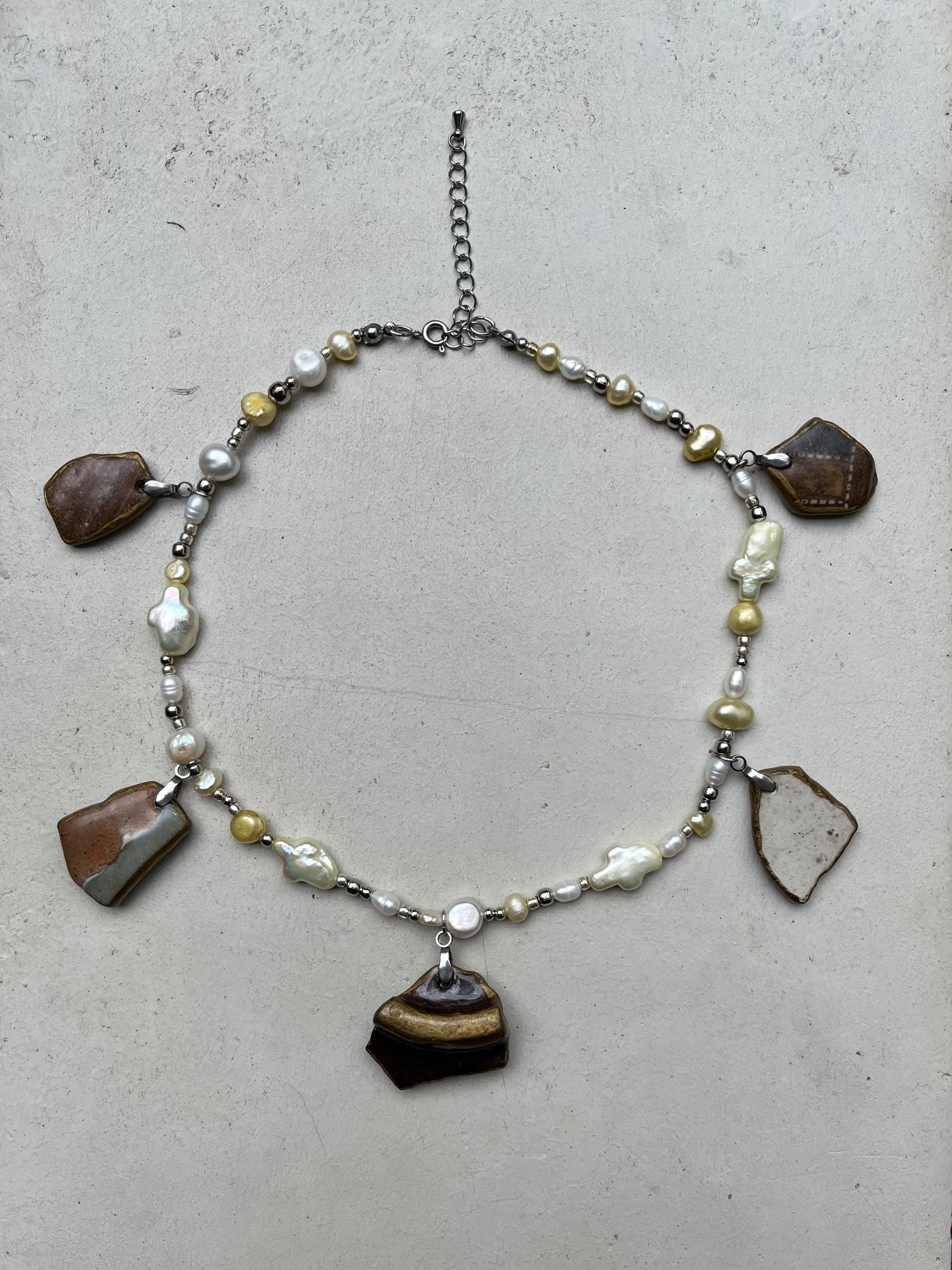 Material: mashiko porttery,surgcal stainless steel,freshwarter pearl,plastic beads