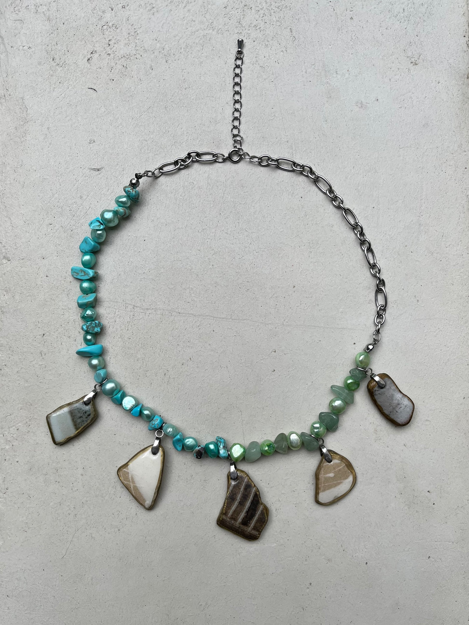 Material: mashiko porttery,surgcal stainless steel,freshwarter pearl,plastic beads