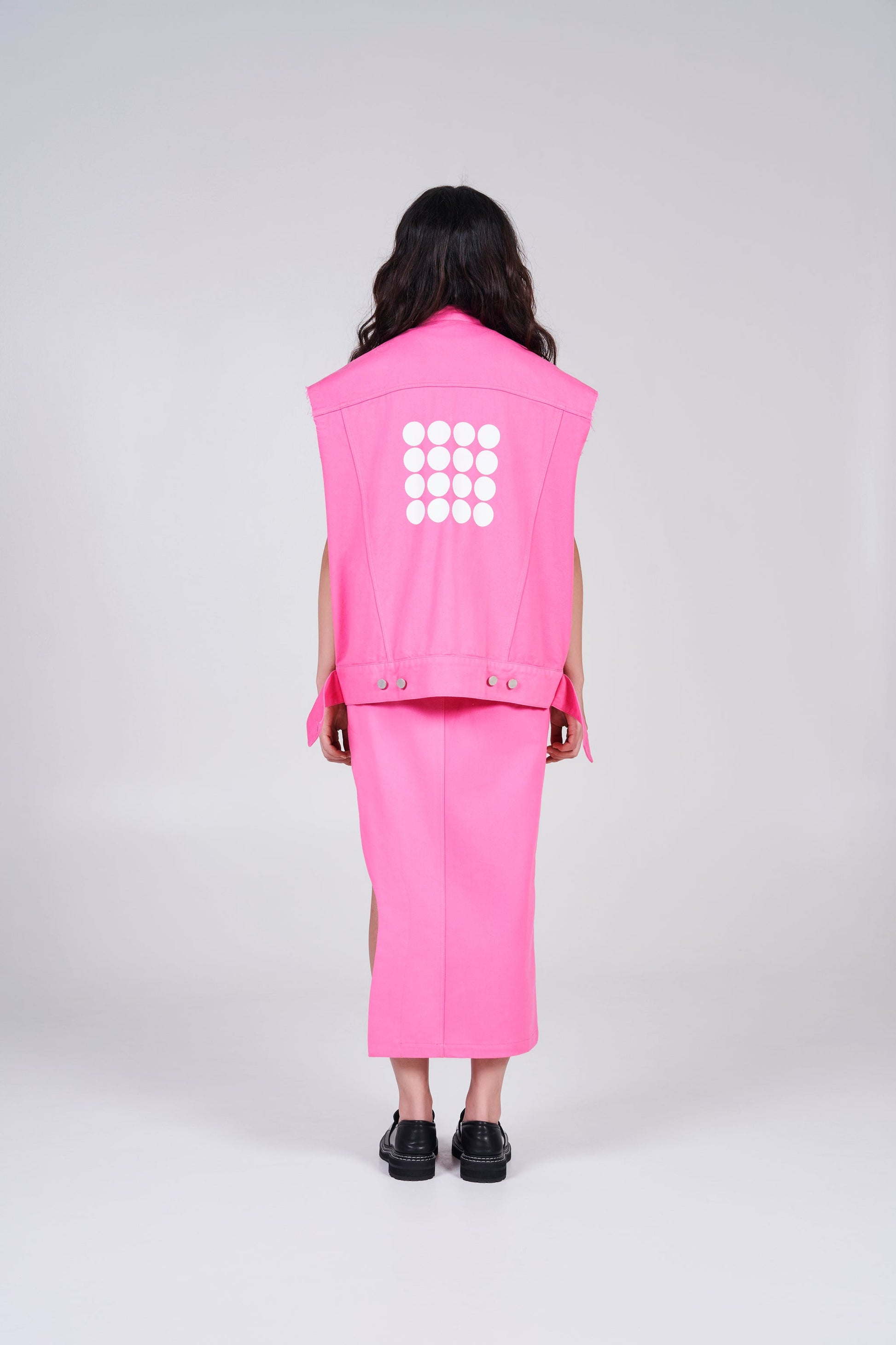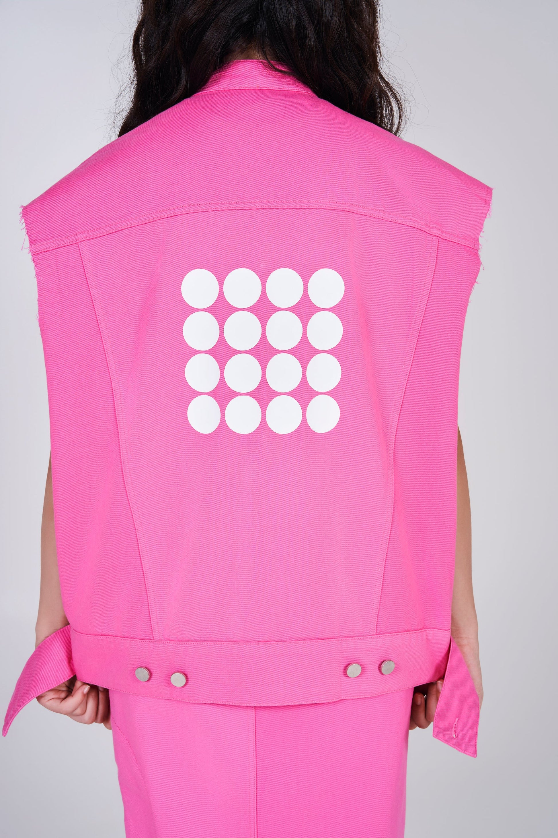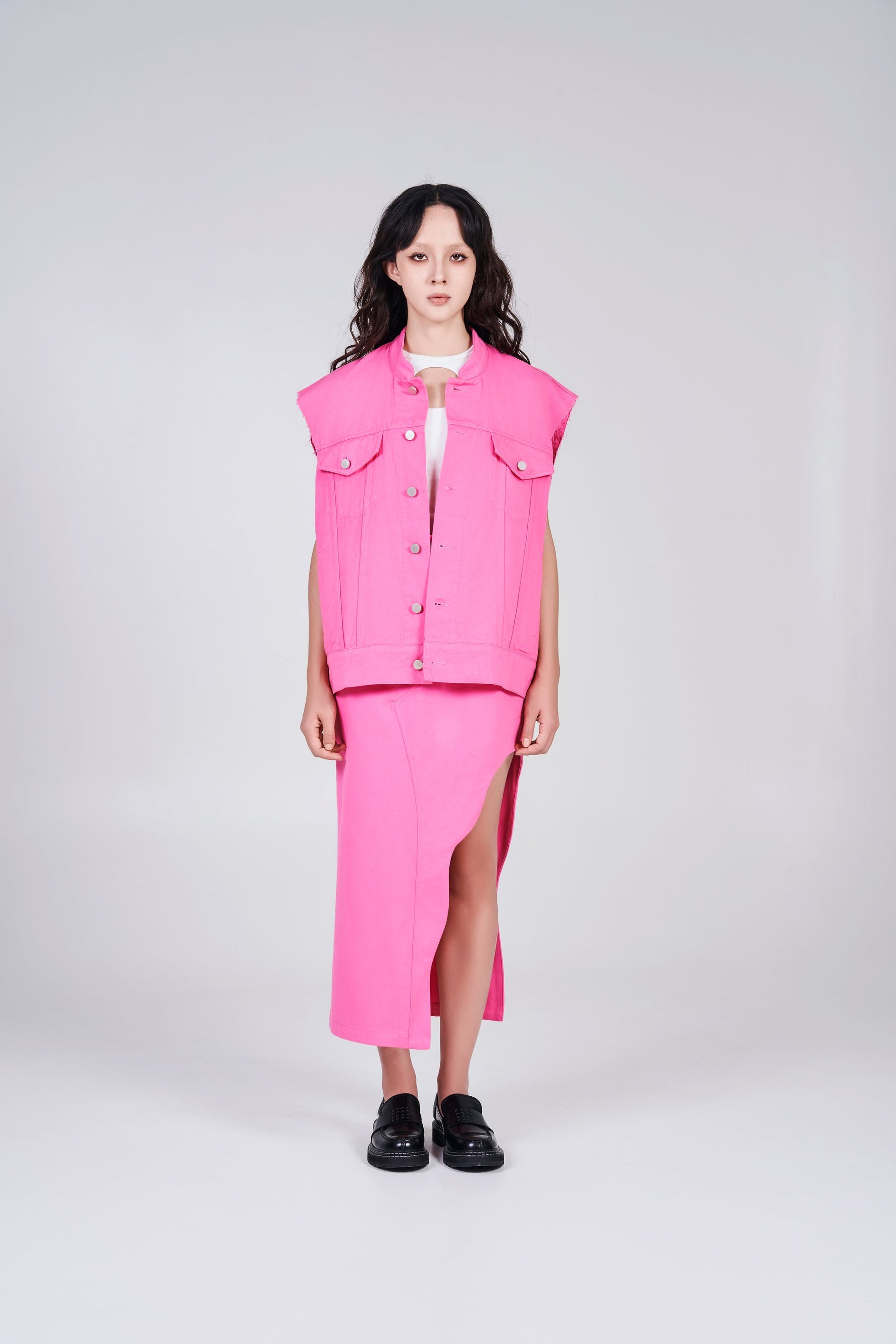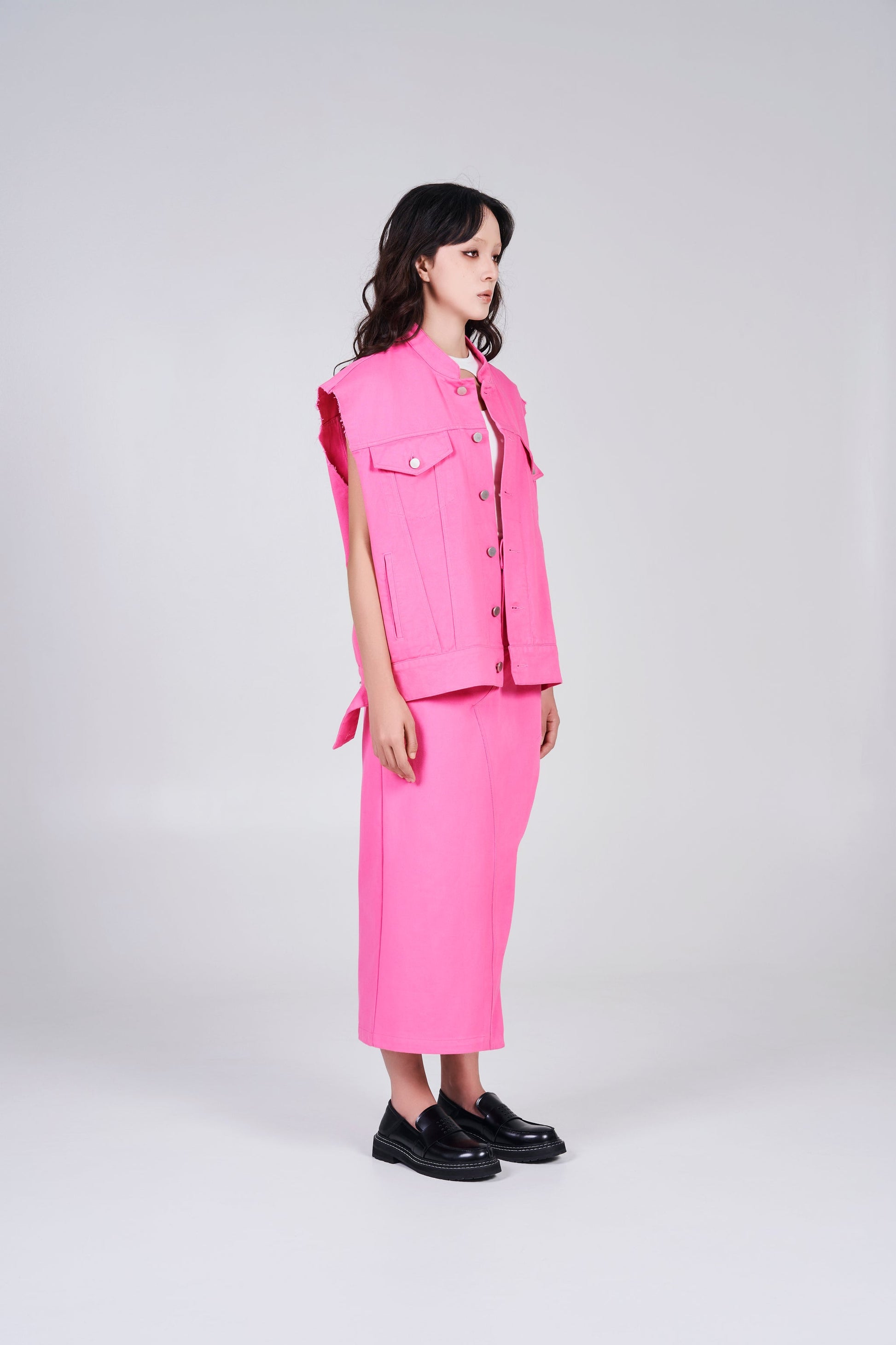 NOIZ N4JK1 OVERSIZED BUTTON FRONT DENIM VEST - PINK