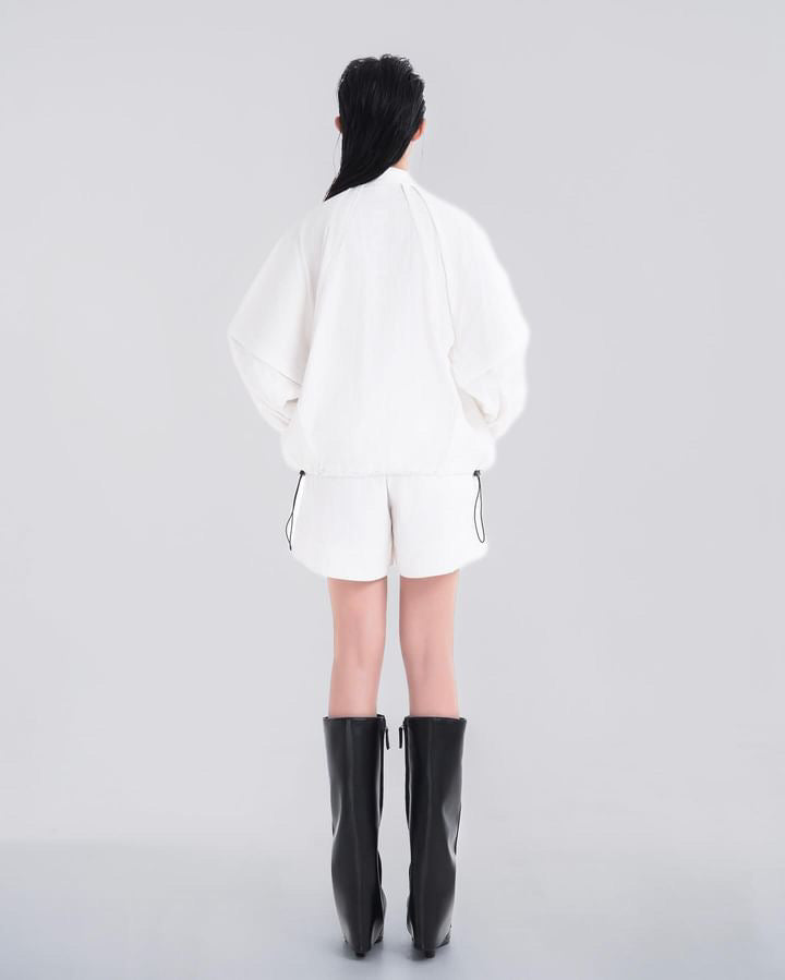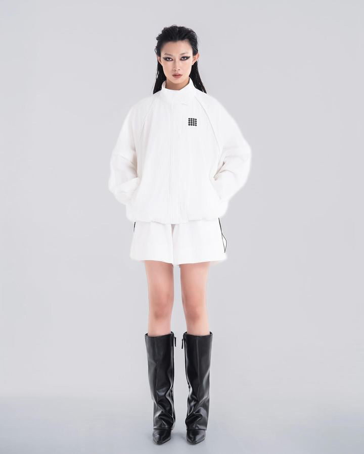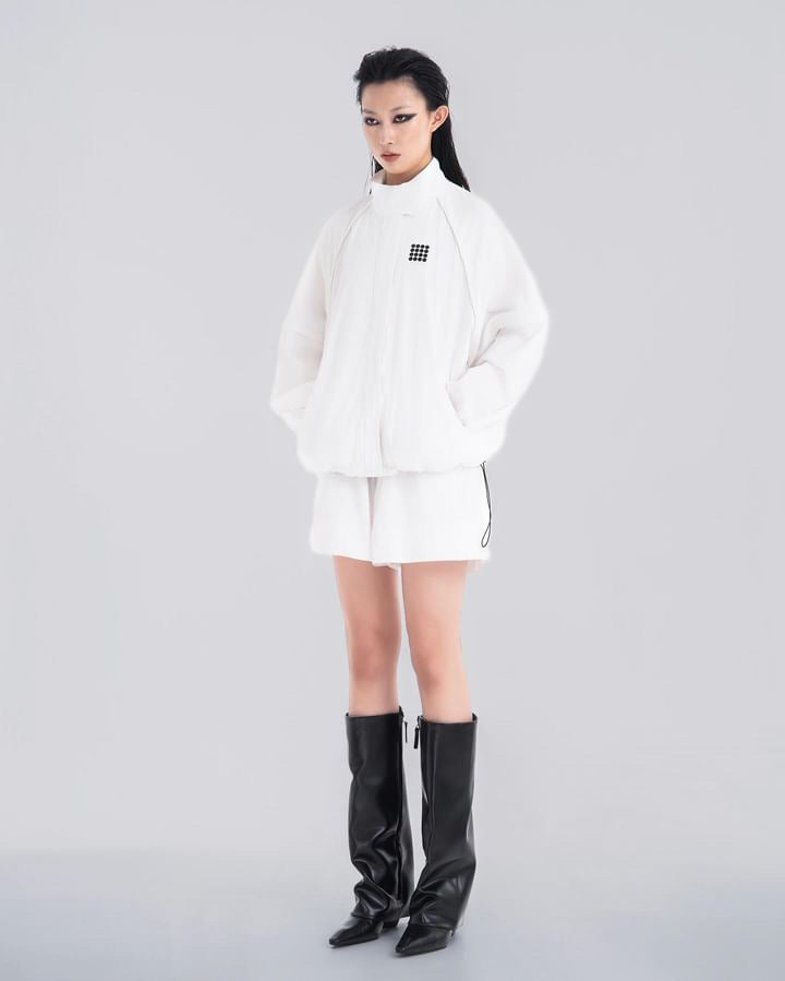 NOIZ N5JK1 DETACHABLE SLEEVES OVERSIZED LOGO WIND JACKET - White