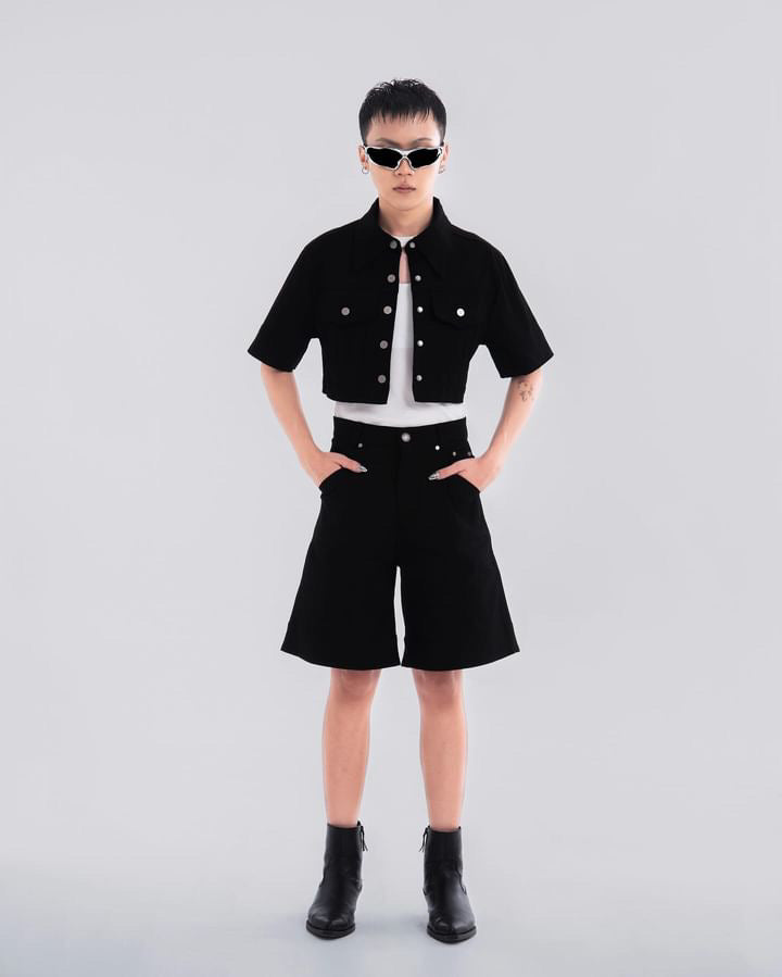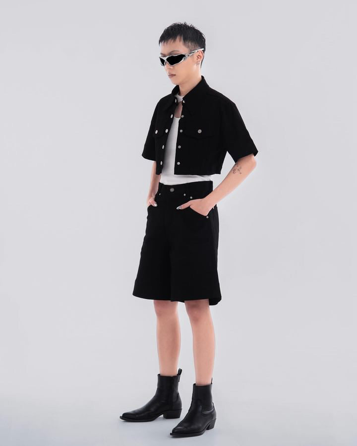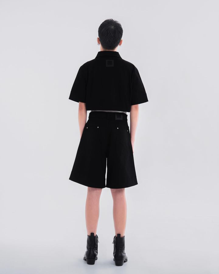 NOIZ N5SP3 MID-RISE DENIM BERMUDA SHORTS - BLACK