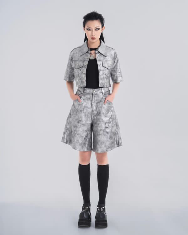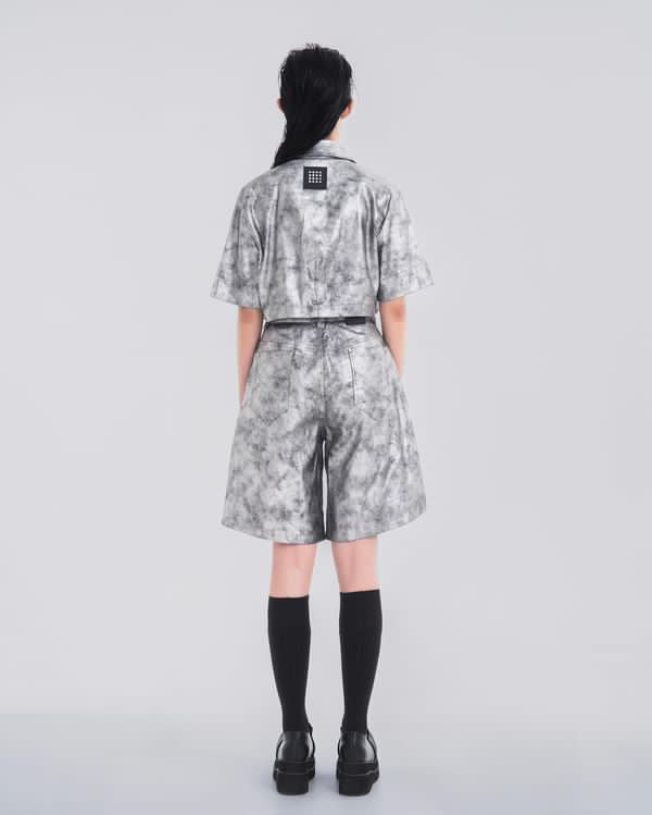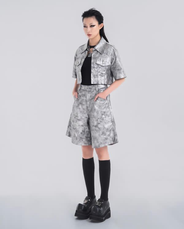 NOIZ N5SP3 MID-RISE DENIM BERMUDA SHORTS - SILVER