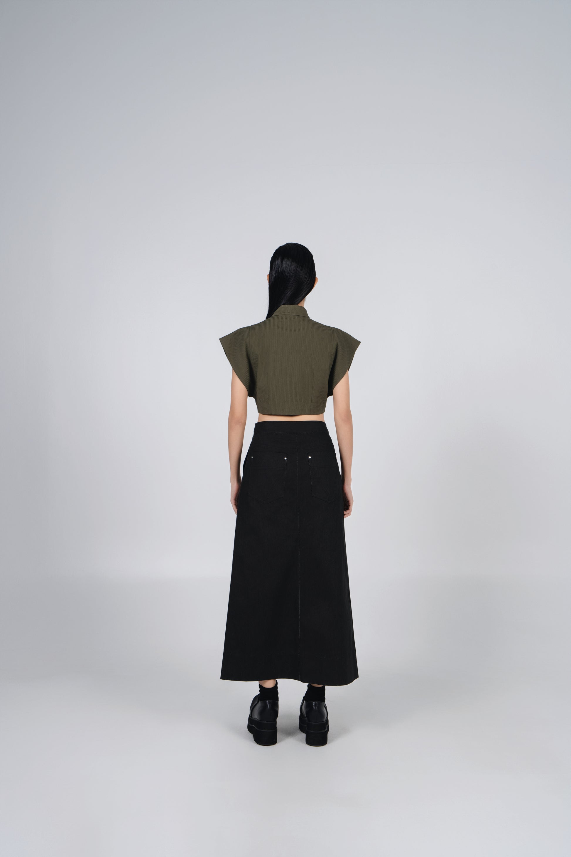 Add a touch of modern oriental to your wardrobe with our Mandarin Collar Chinese Knots Crop Top. Featuring a wide and pointed shoulder and a sophisticated mandarin collar and three decorative Chinese knots blending tradition with modern flair. Perfectly structured for a flattering silhouette, pairing effortlessly with high-waisted bottoms.
