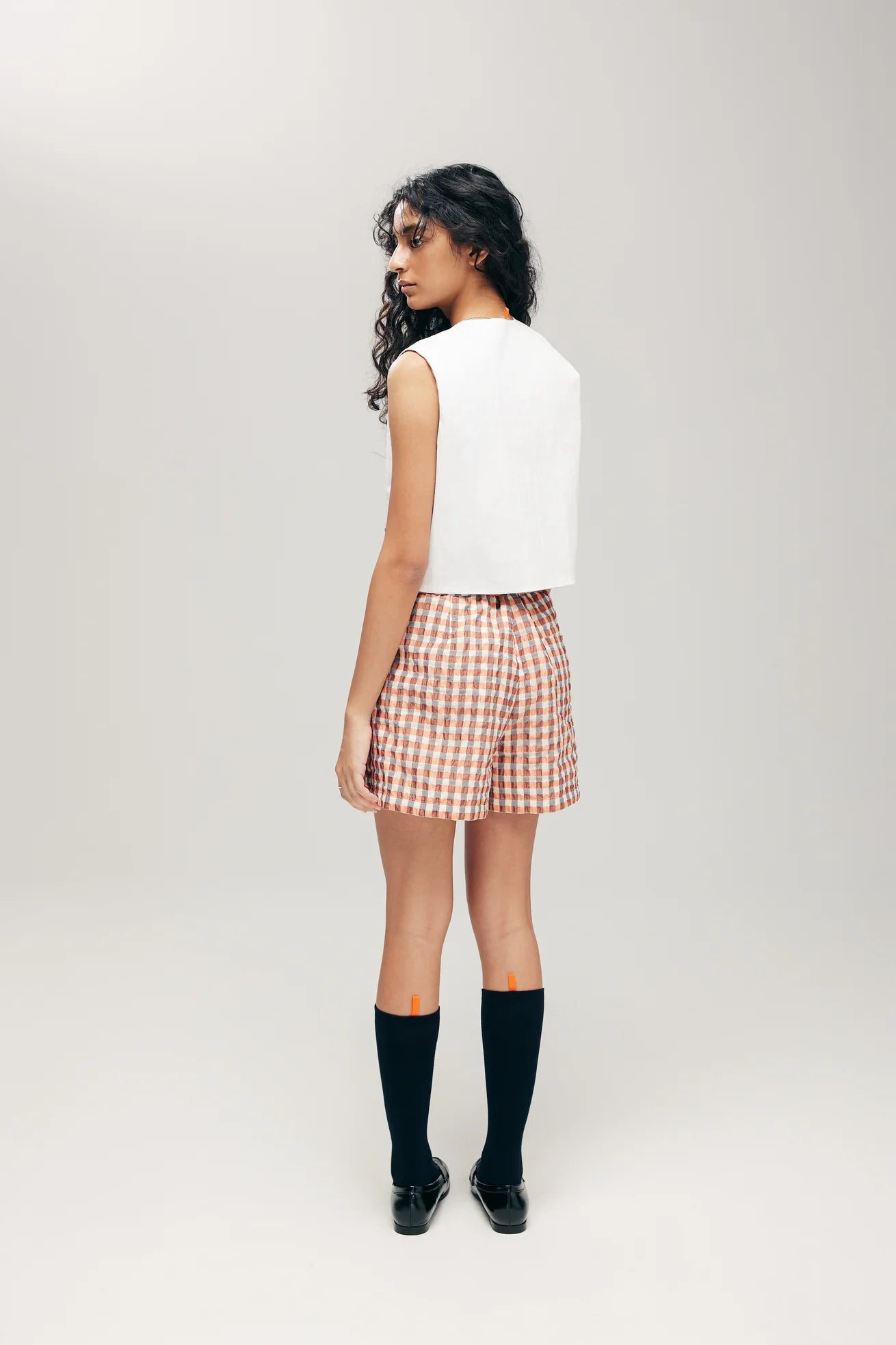 Taking reference from men's boxers, the Orime Boxer shorts which also translates to "fold" in Japanese, features a key pleat on the front and is cut in a straight silhouette. Finished with functional pockets on the front, and a patch pocket on the back. The trousers also has an elasticated waist for a closer fit, with adjustable button tab details. Comes with a key tab on the side for hooking on your keys or knick knacks.
