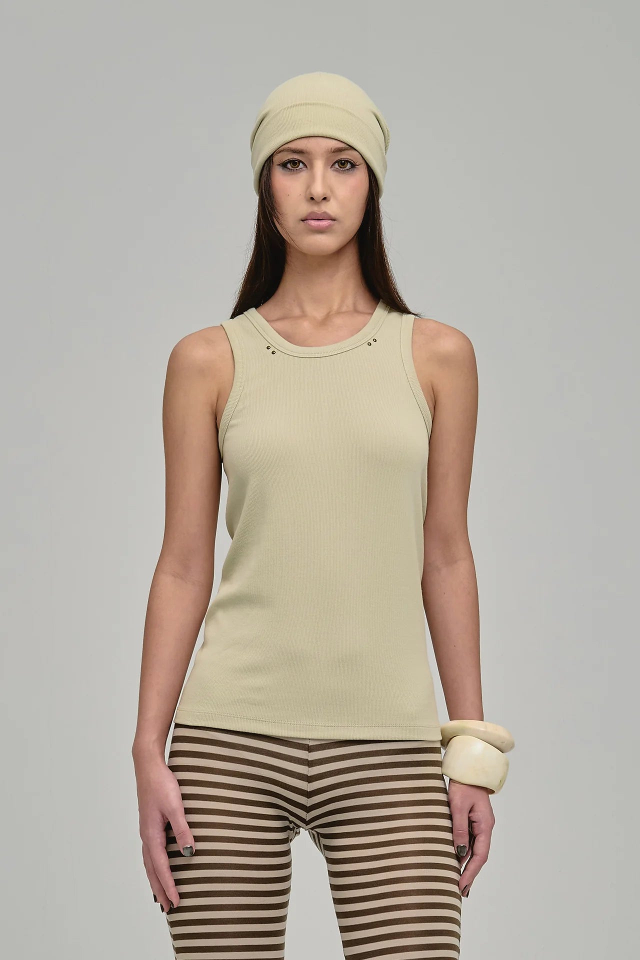 Unisex, stretchable, ribbed tank in beige