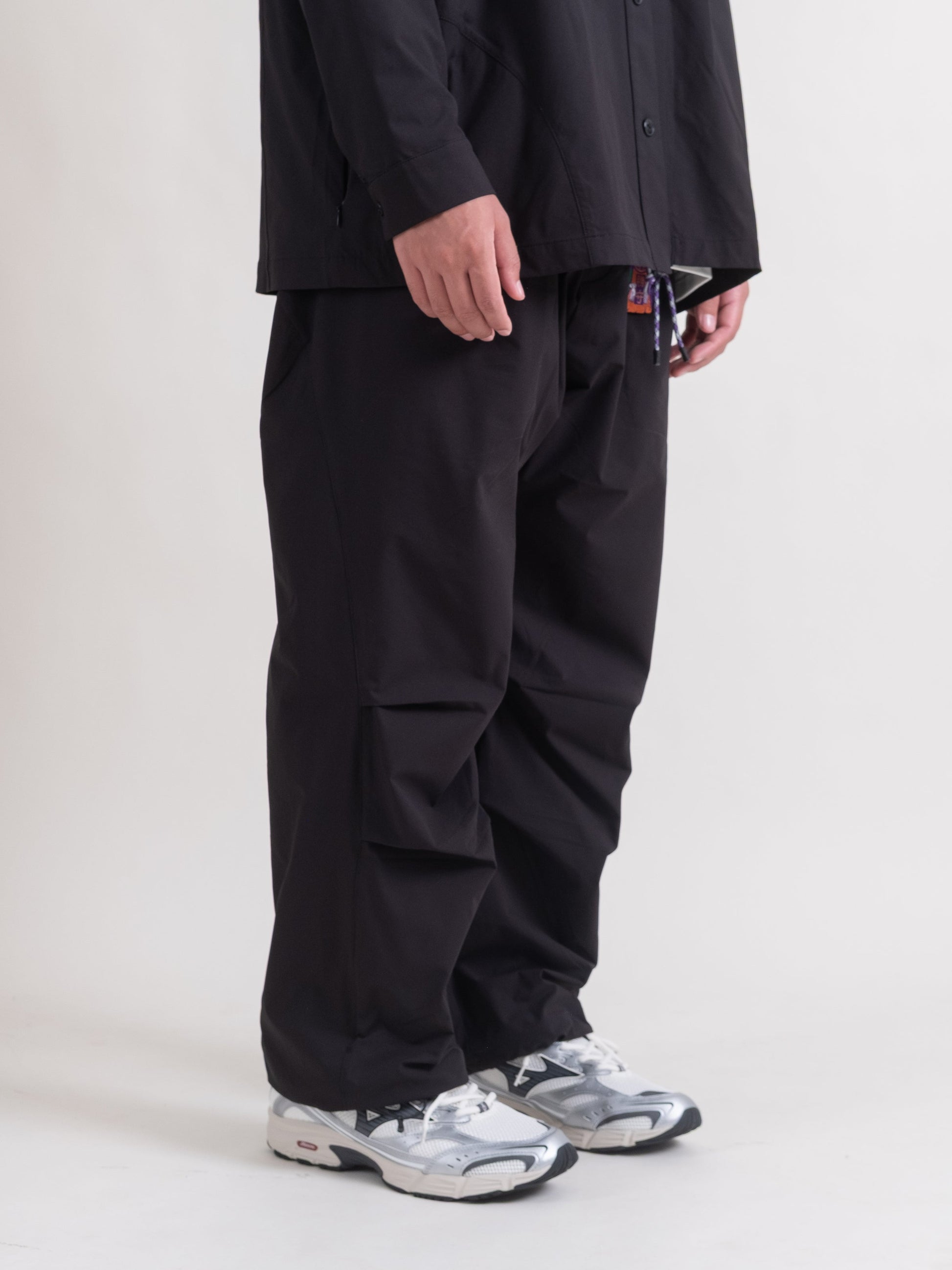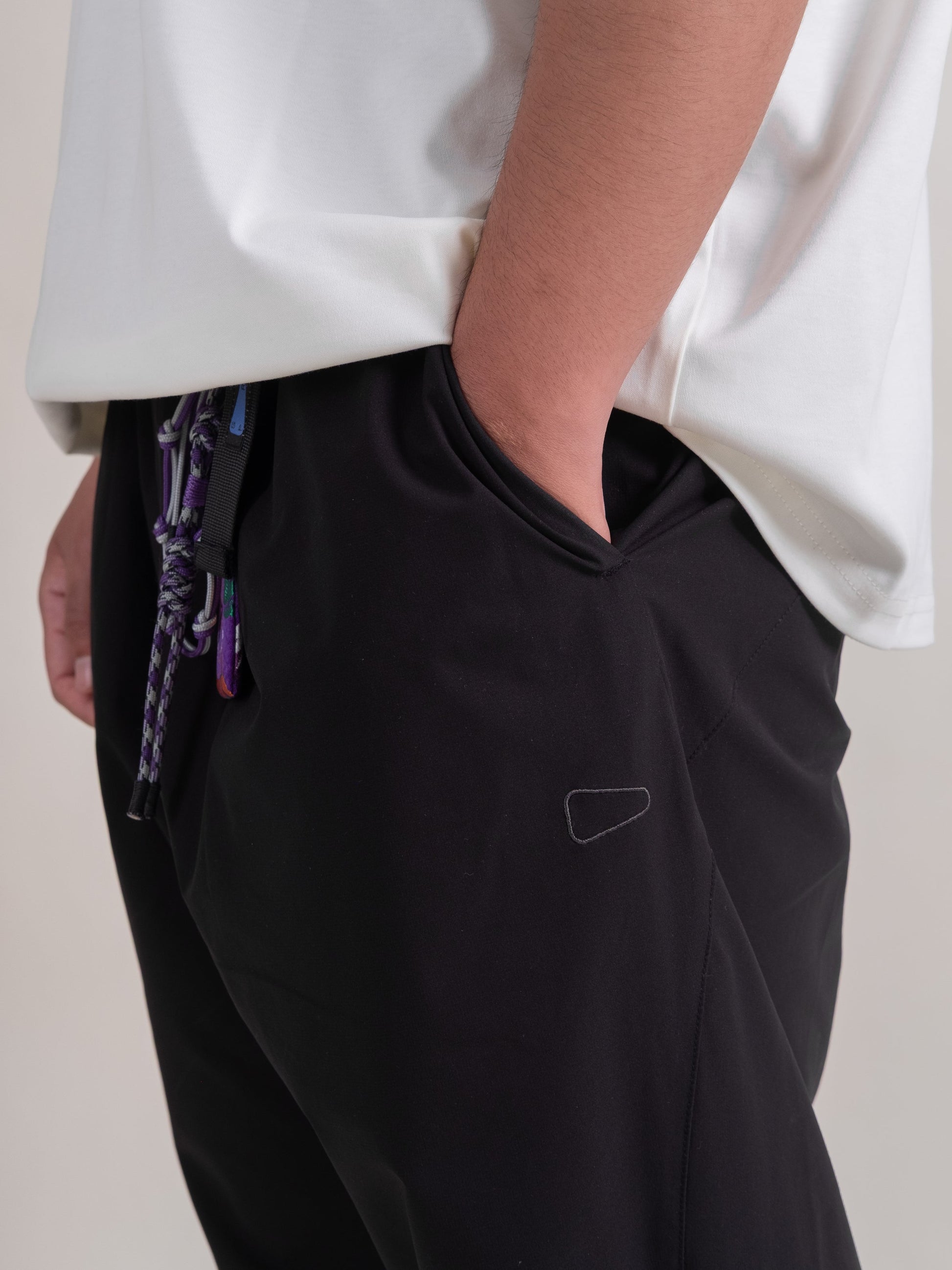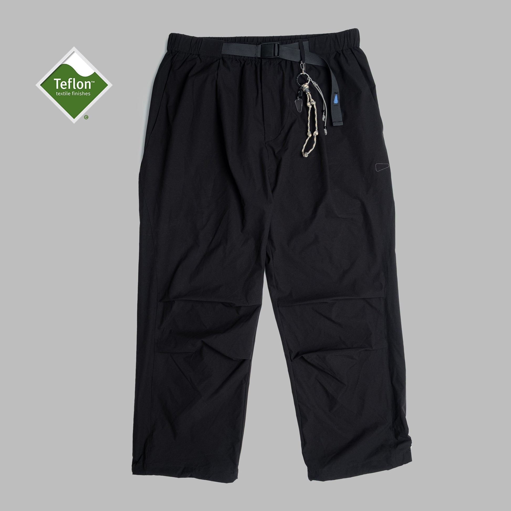These pants come with a complimentary, randomly selected handmade carabiner—each one is unique. Pants made from high-performance 100% polyester fabric with a Teflon™ coating, making them water-resistant, durable, and stretchable. Designed with an adjustable built-in belt for a better fit, articulated knees for enhanced mobility, and a drawstring at the hem for added style.