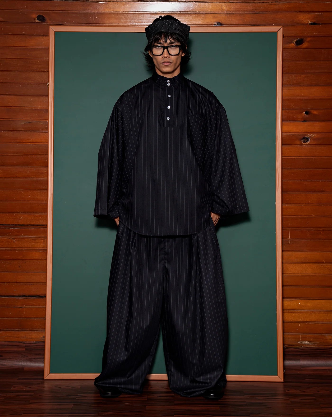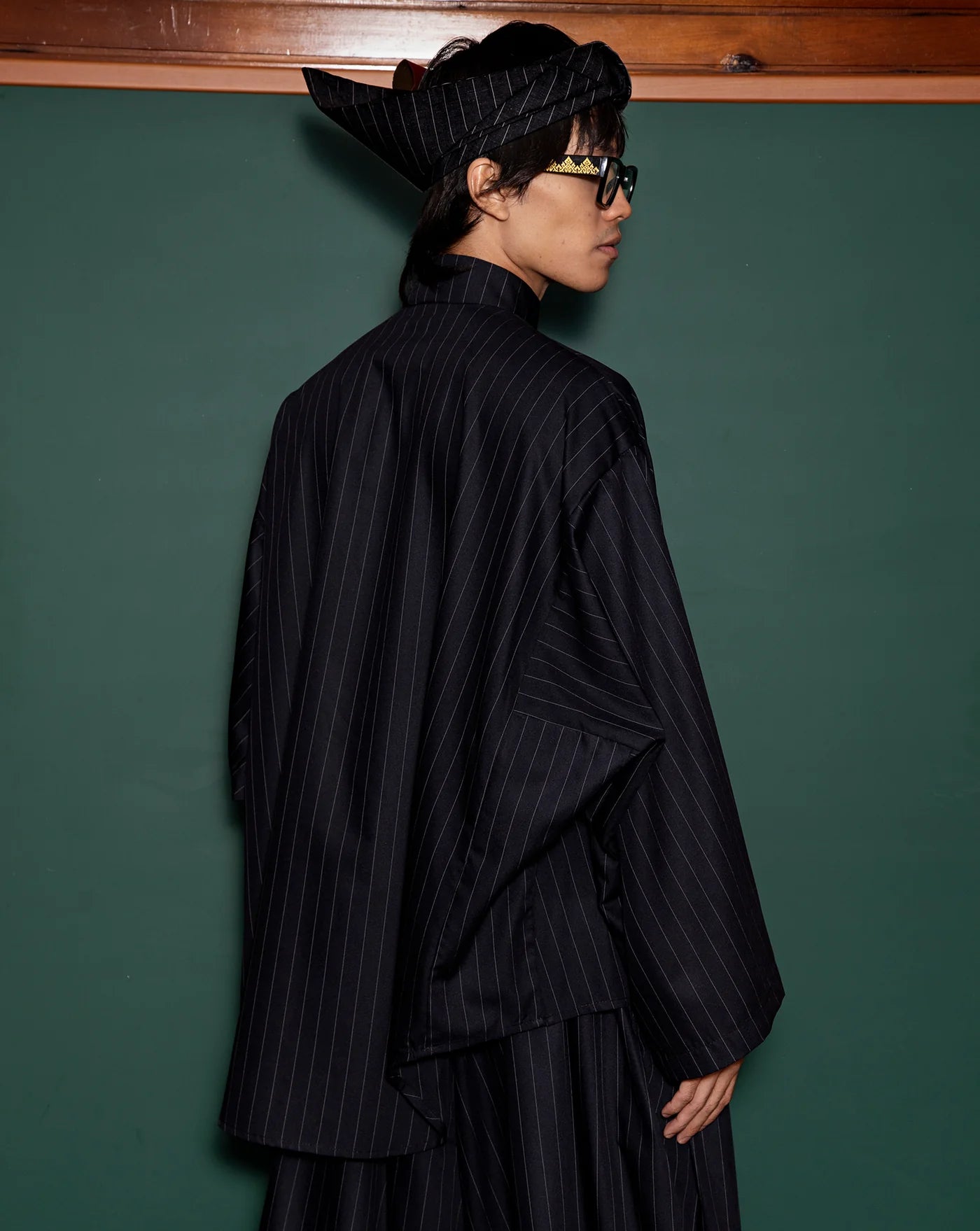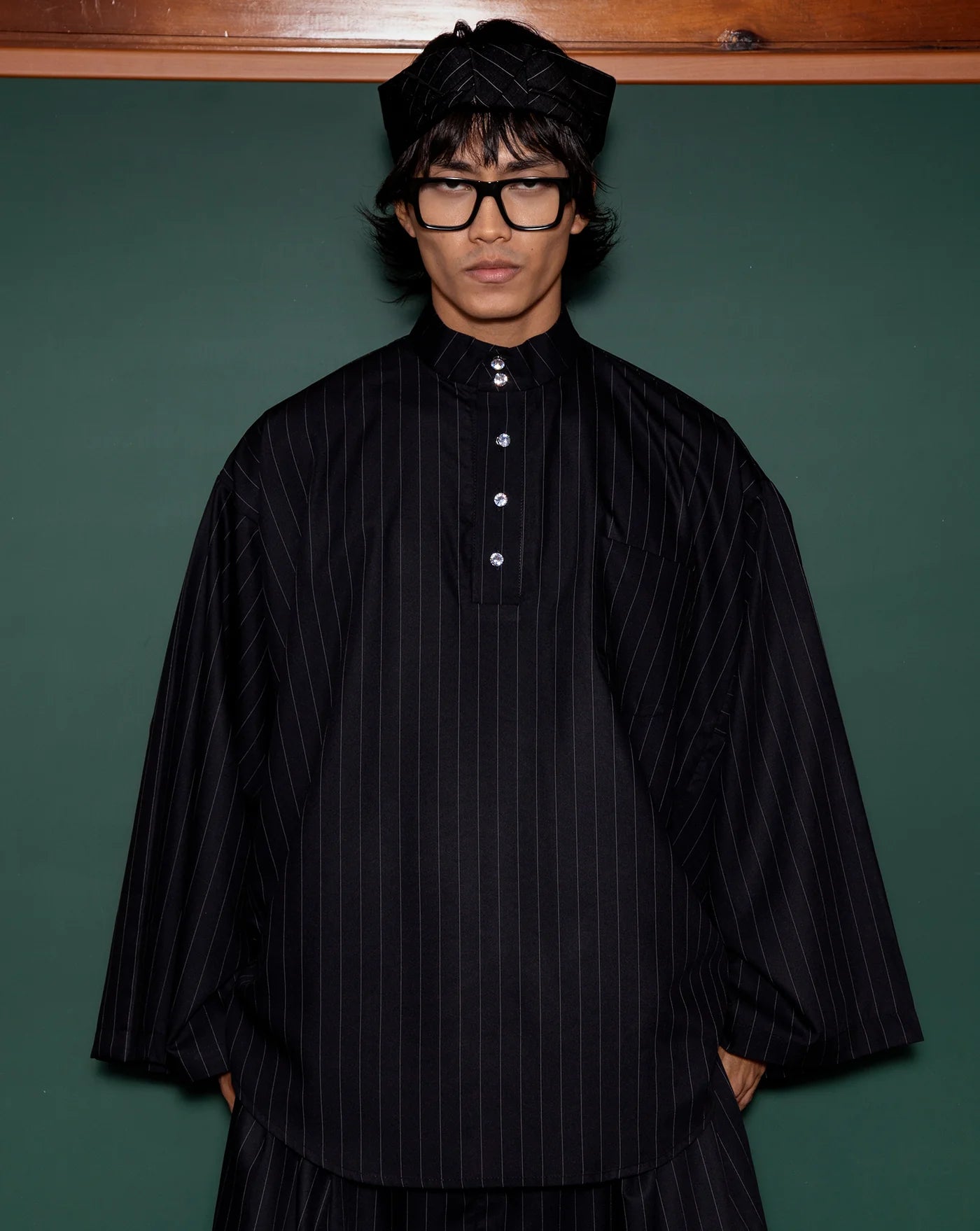Baju Melayu Oversaiz Cekak Musang (Navy Pinstripes)