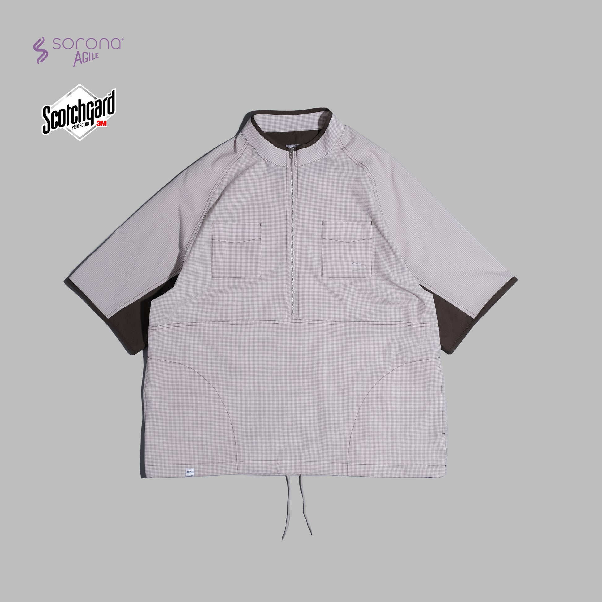 This pullover is made from Polyester Sorona® Agile fabric. Sorona fibers and polyester are interwoven to give the fabric a soft touch, good shape retention, and long lasting color. Scotchgard moisture-wicking agent from 3M is used to change the fabric's properties such as water absorption, diffusion, and sweat wicking through fabric structure design, providing water absorption and quick-drying capabilities