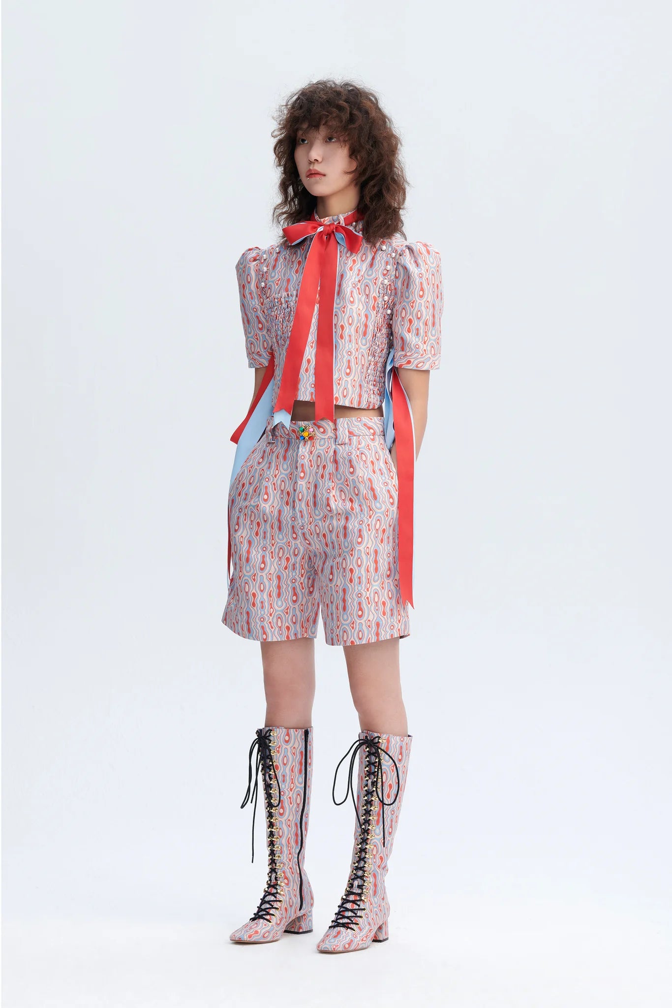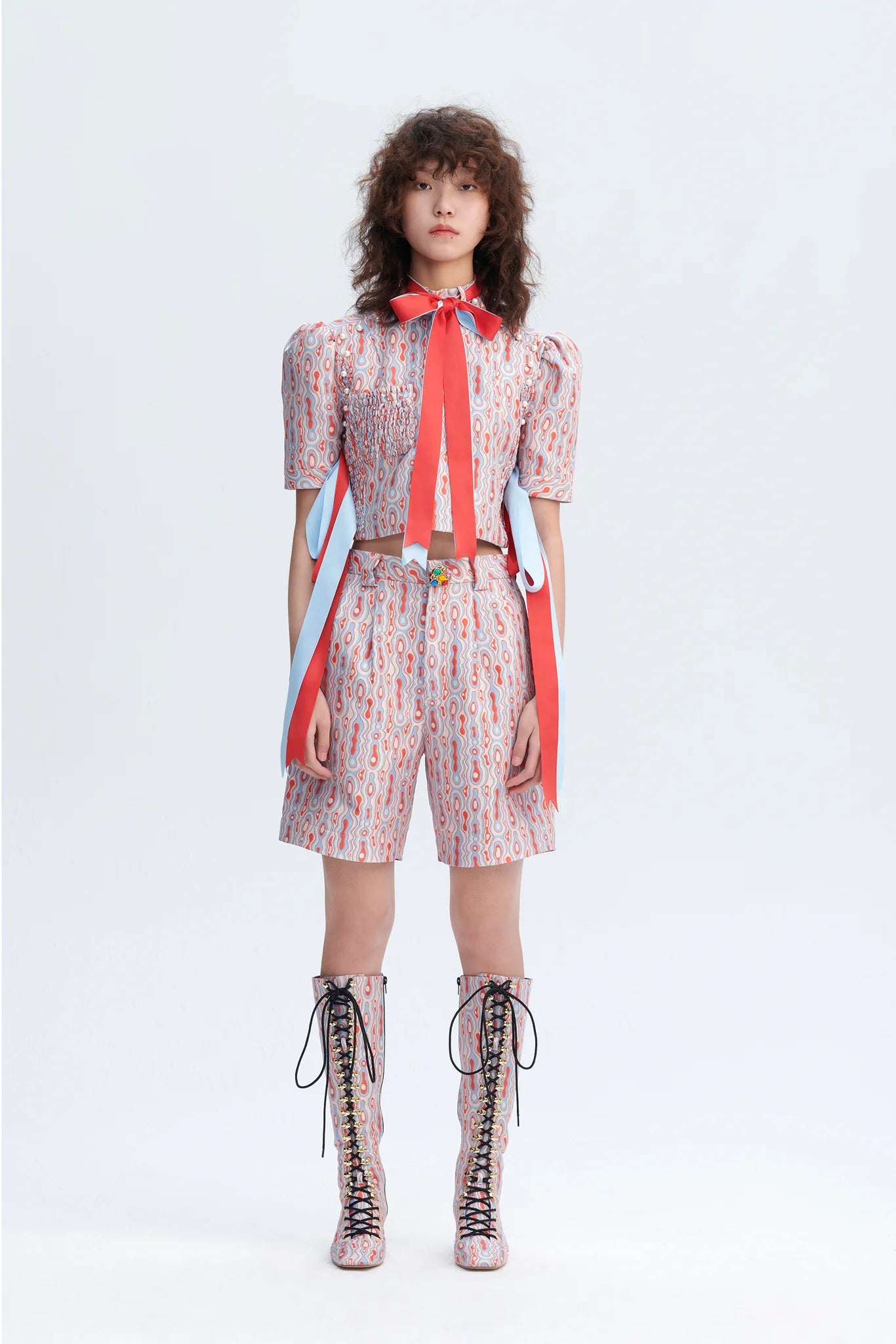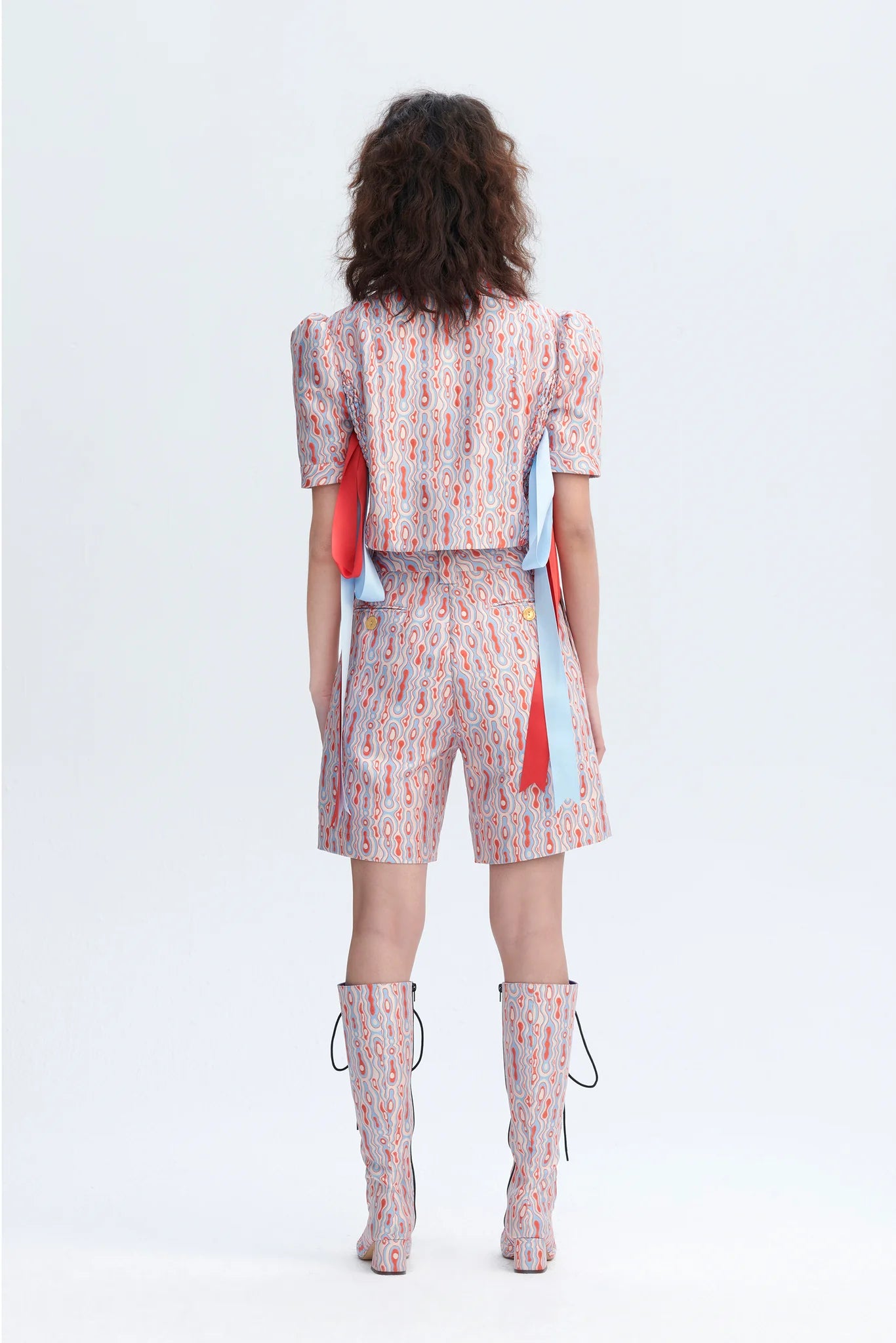 - Ripple print in tones of poppy pink/crystal blue
