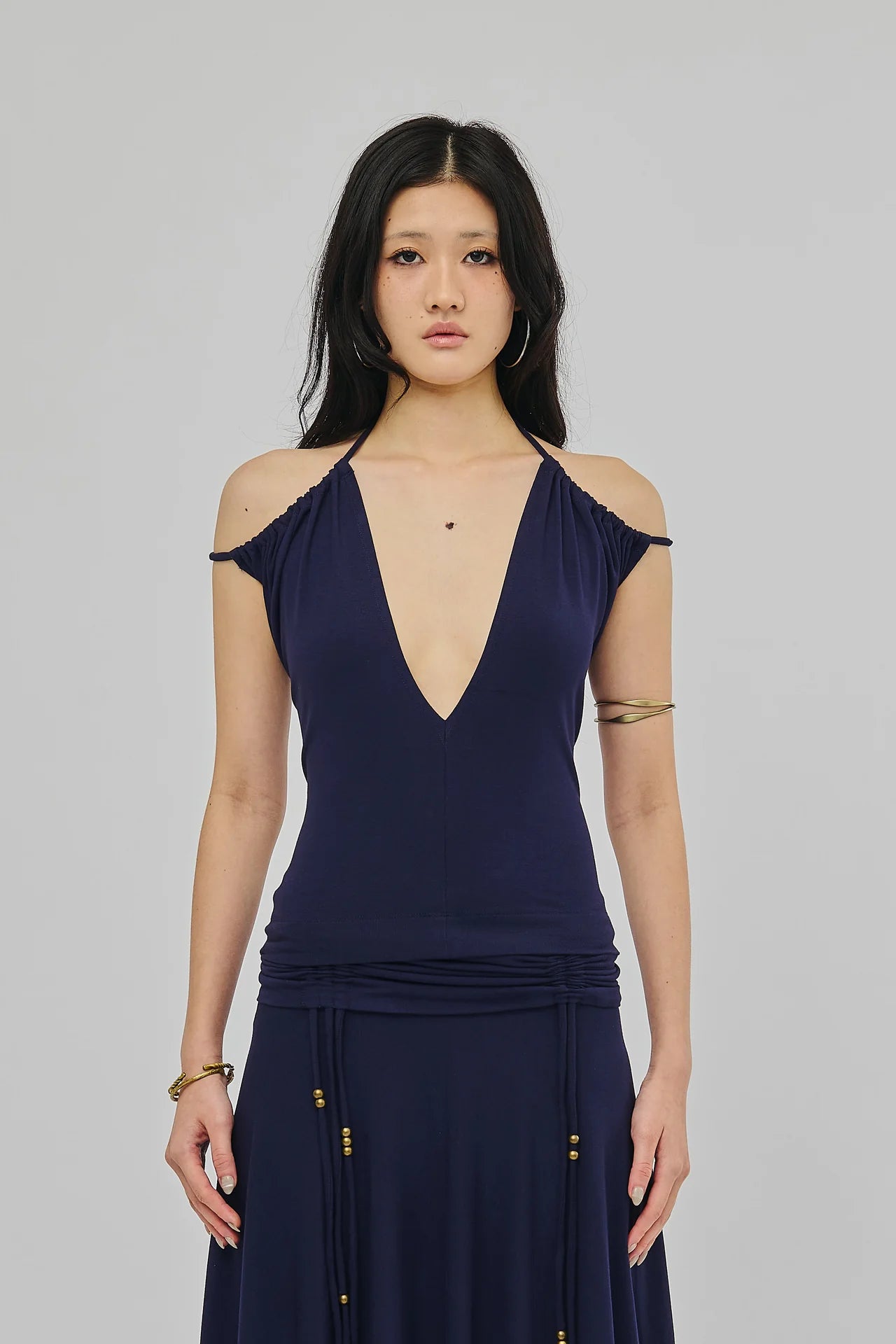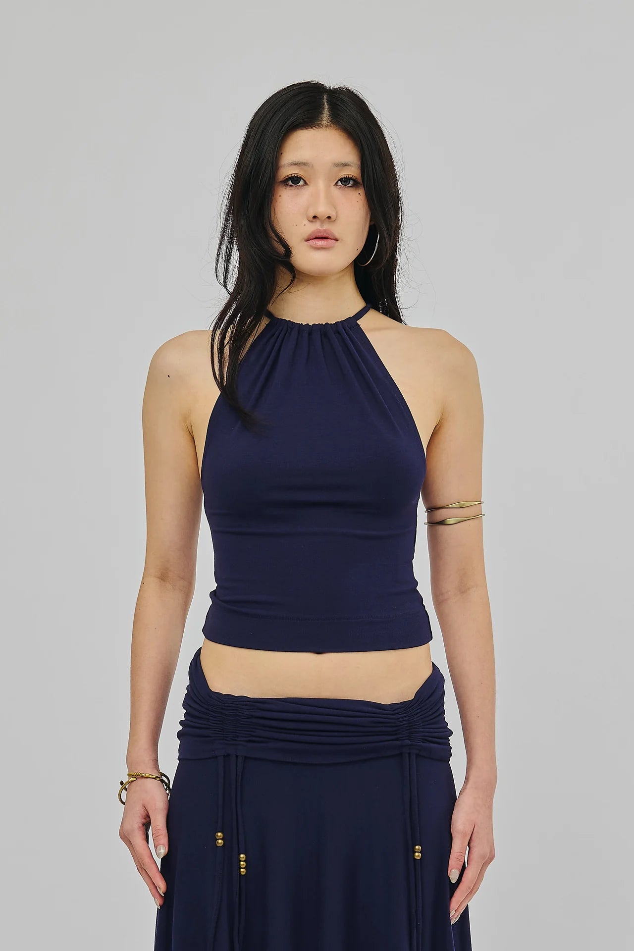 Multi-way halter top in navy blue