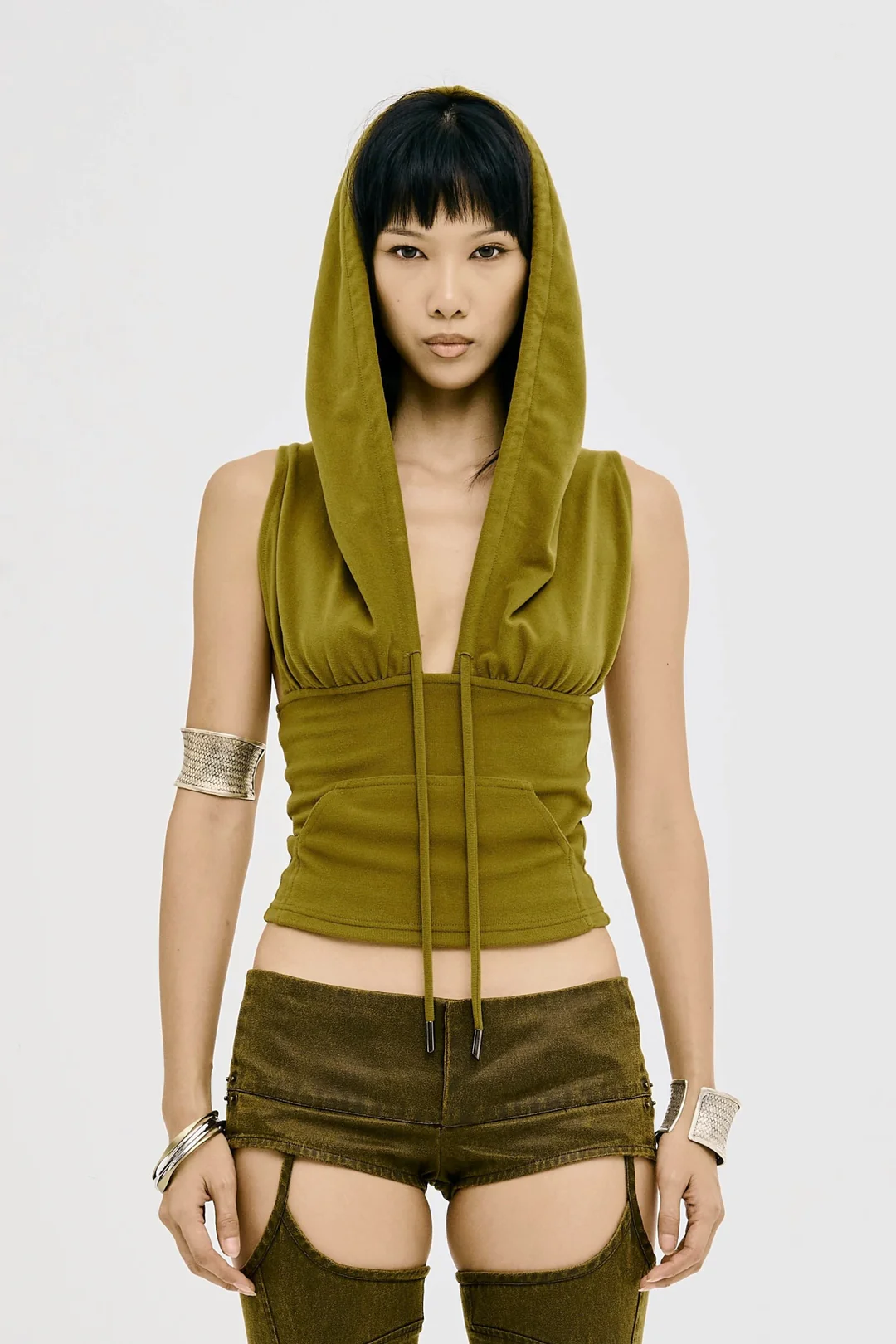 Hooded tank top in swamp green