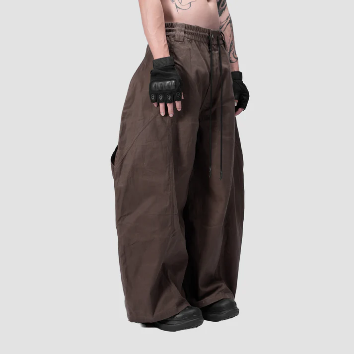 SPLIT CURVE PANTS - BROWN