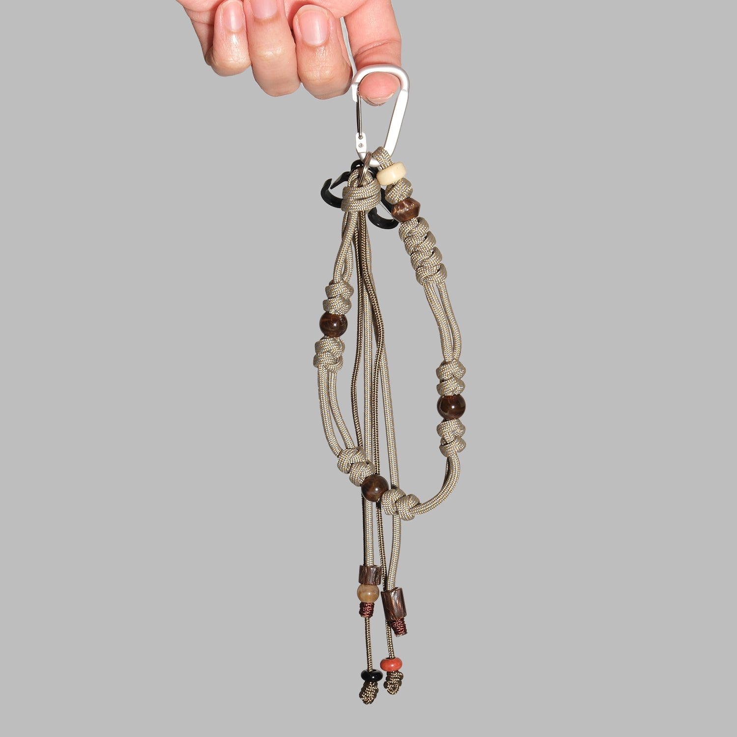 Improved from previous version, now it comes with a larger carabiner and 2 small Duraflex carabiner. Each paracord is handmade by TW, making every piece unique.