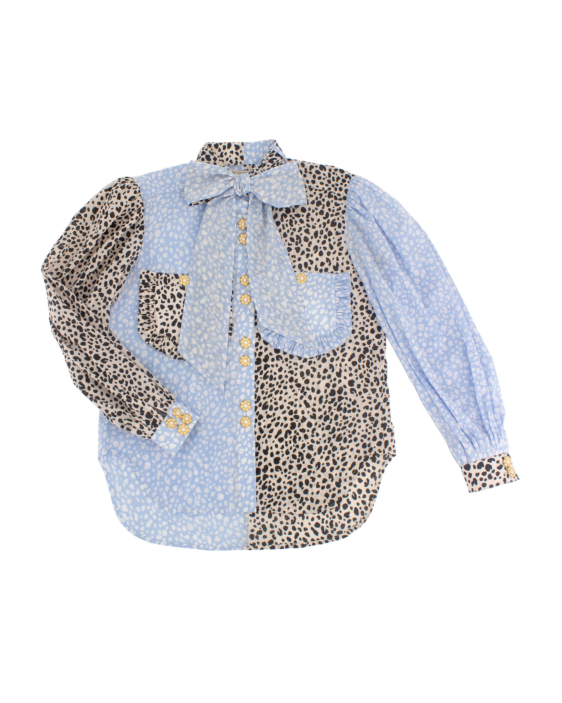 - Pleated ruffle trimmed breast pockets