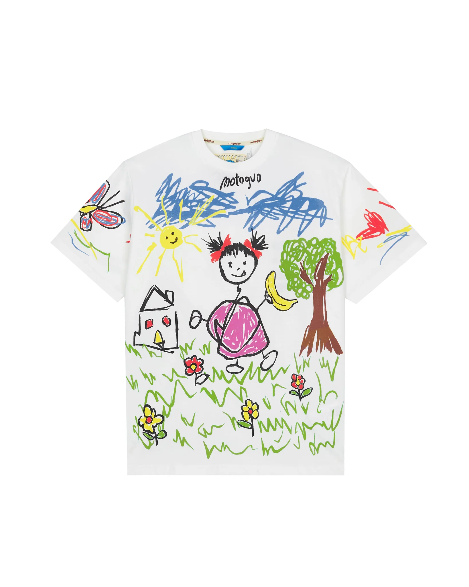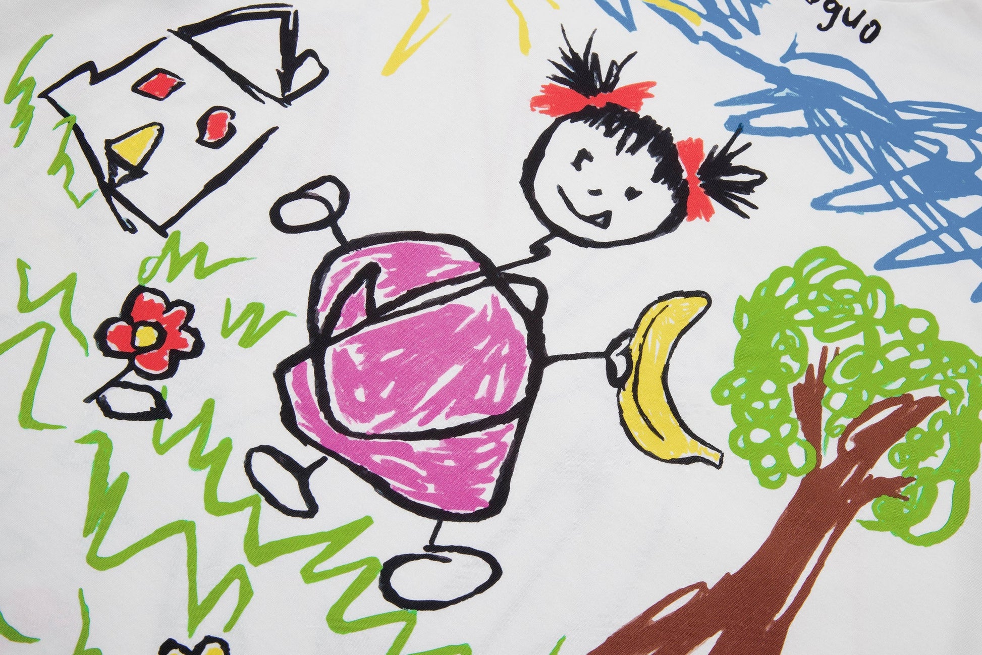 - Colourful childish doodle print that would camouflage any stains