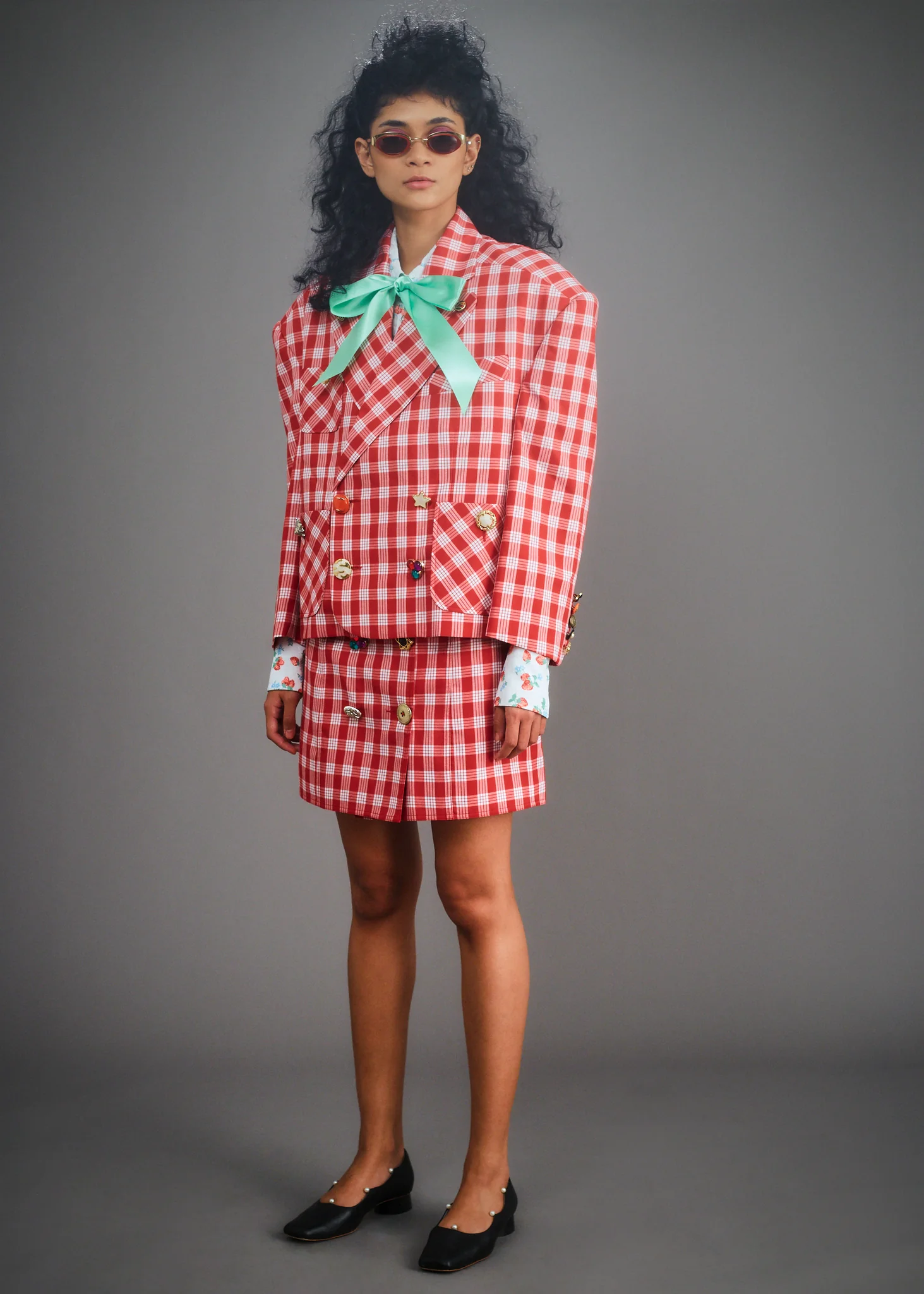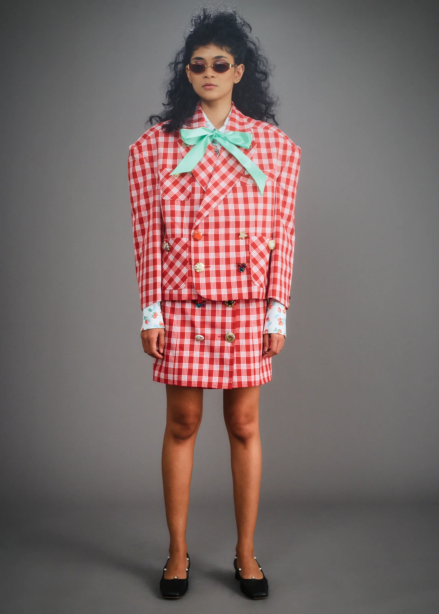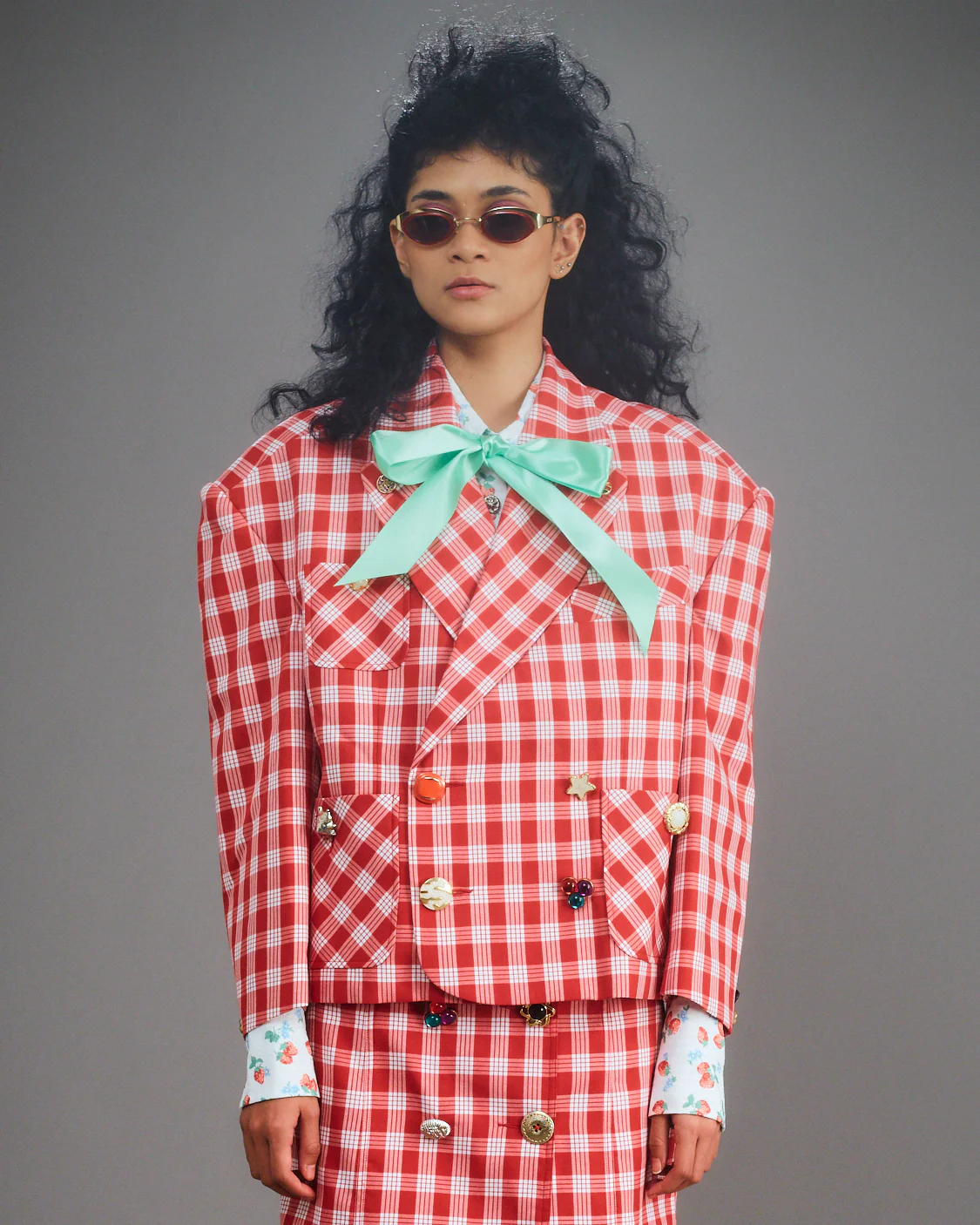 - Take a closer look and you’ll find the patch pockets are intentionally cut in bias to create a visually staggering effect